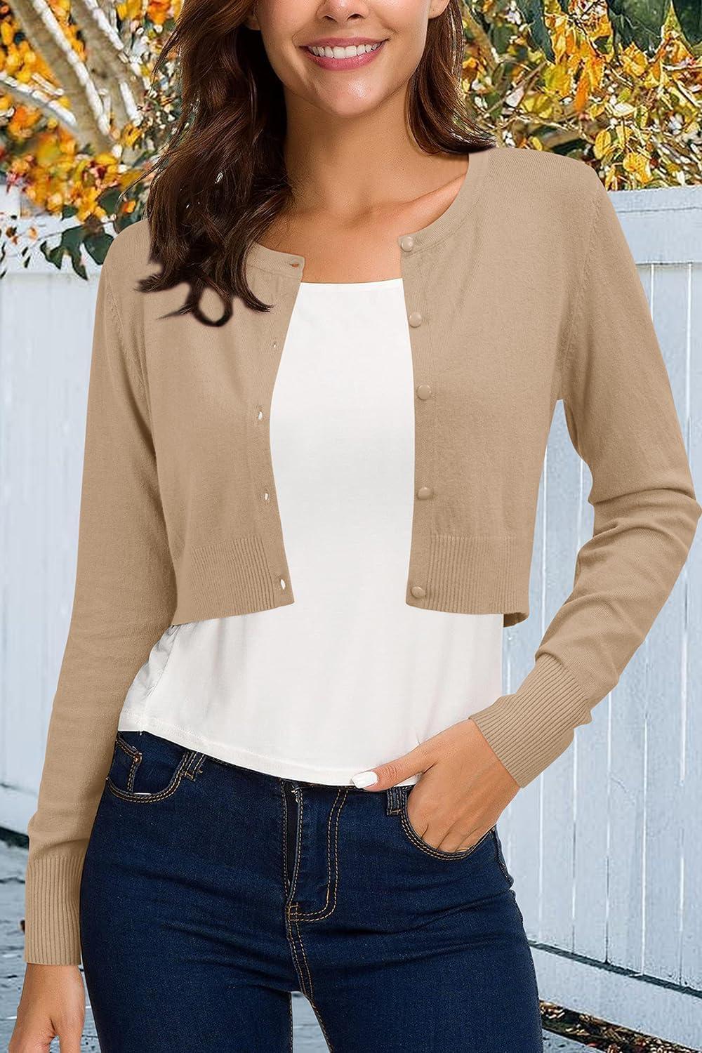Newshows Cropped Cardigan Sweaters for Women 2025 Crew Neck Button Down Open Front Knit Bolero Shrugs(Apricot)