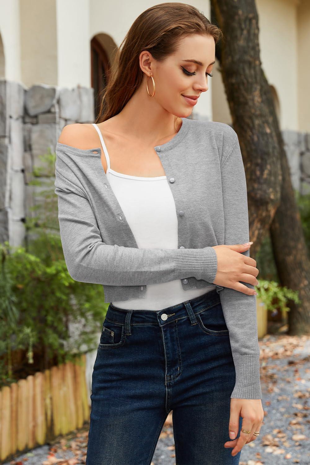 Newshows Cropped Cardigan Sweaters for Women 2025 Crew Neck Button Down Open Front Knit Bolero Shrugs(Grey01)