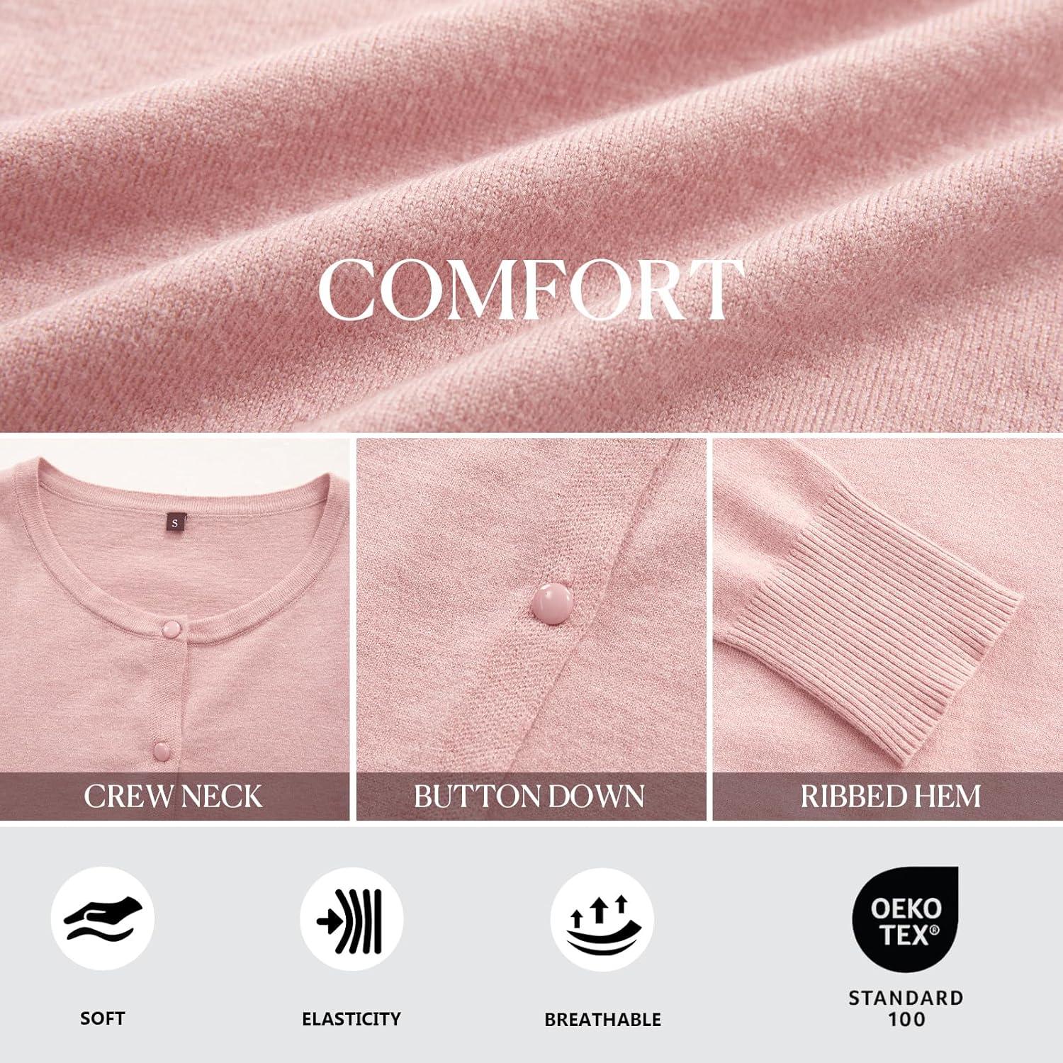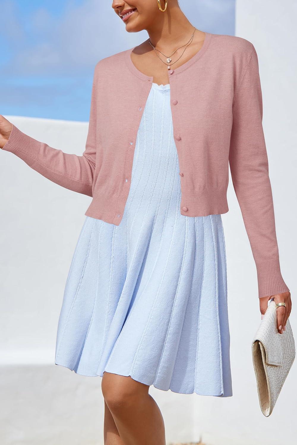 Newshows Cropped Cardigan Sweaters for Women 2025 Crew Neck Button Down Open Front Knit Bolero Shrugs(Pink02)