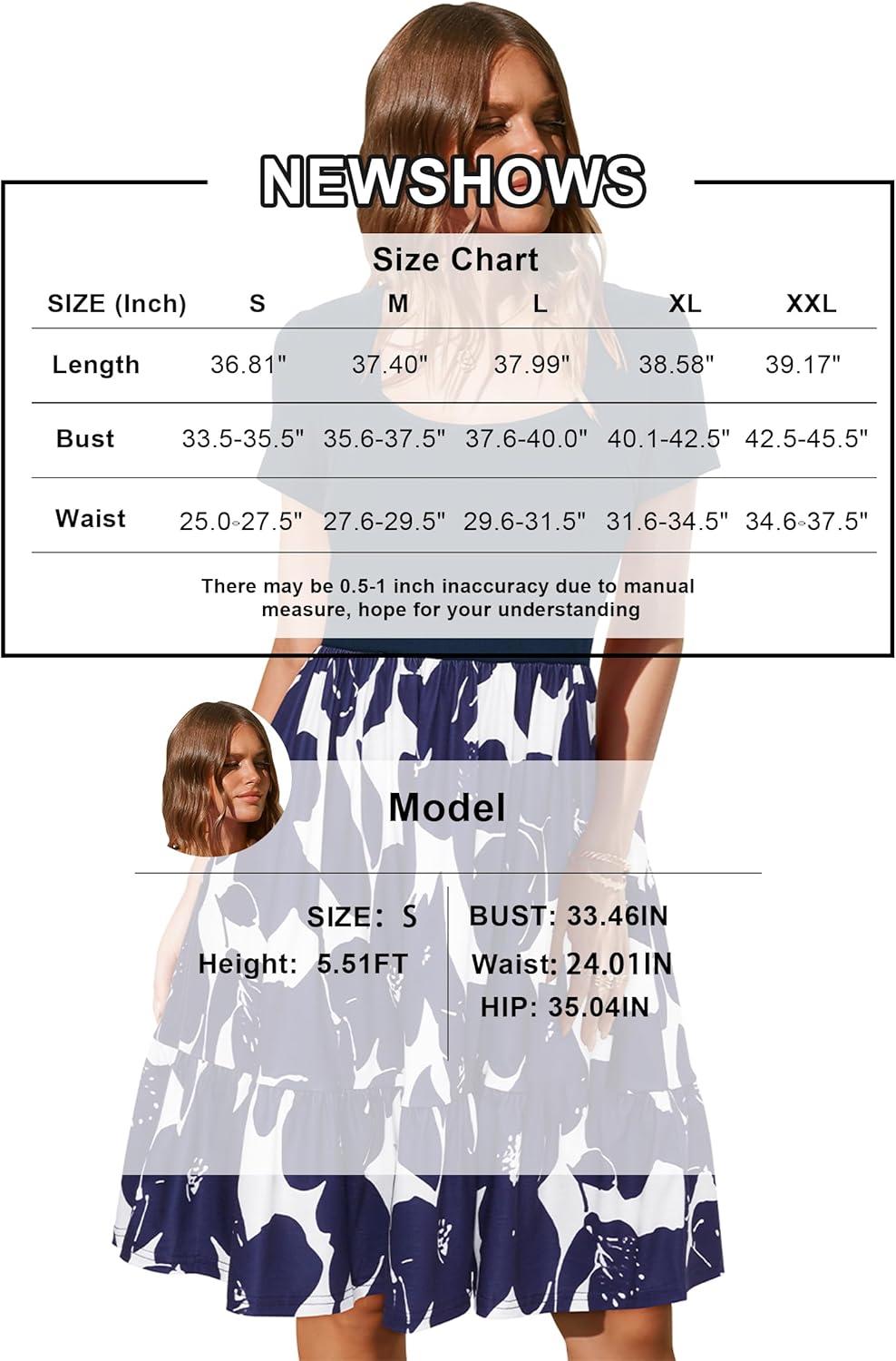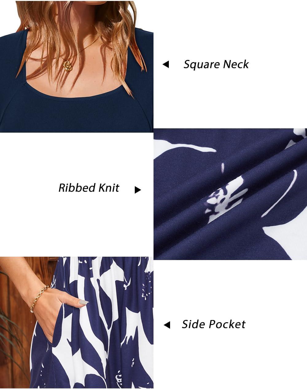 Newshows Women 2025 Summer Dress Square Neck Formal Short Sleeve Business Casual Outfits Ruffle Spring Pockets Sundress(Navy Floral White)