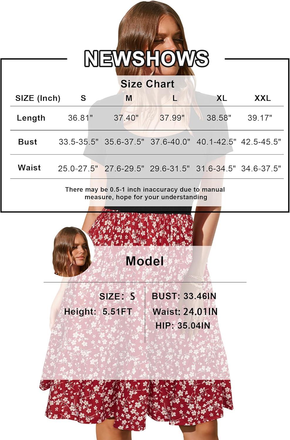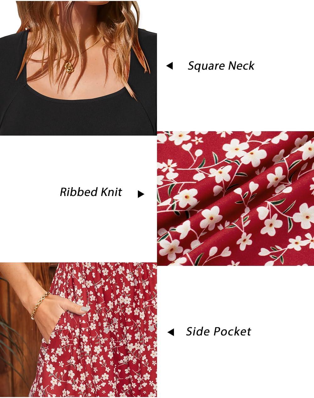 Newshows Women 2025 Summer Dress Square Neck Formal Short Sleeve Business Casual Outfits Ruffle Spring Pockets Sundress(Red Floral White)