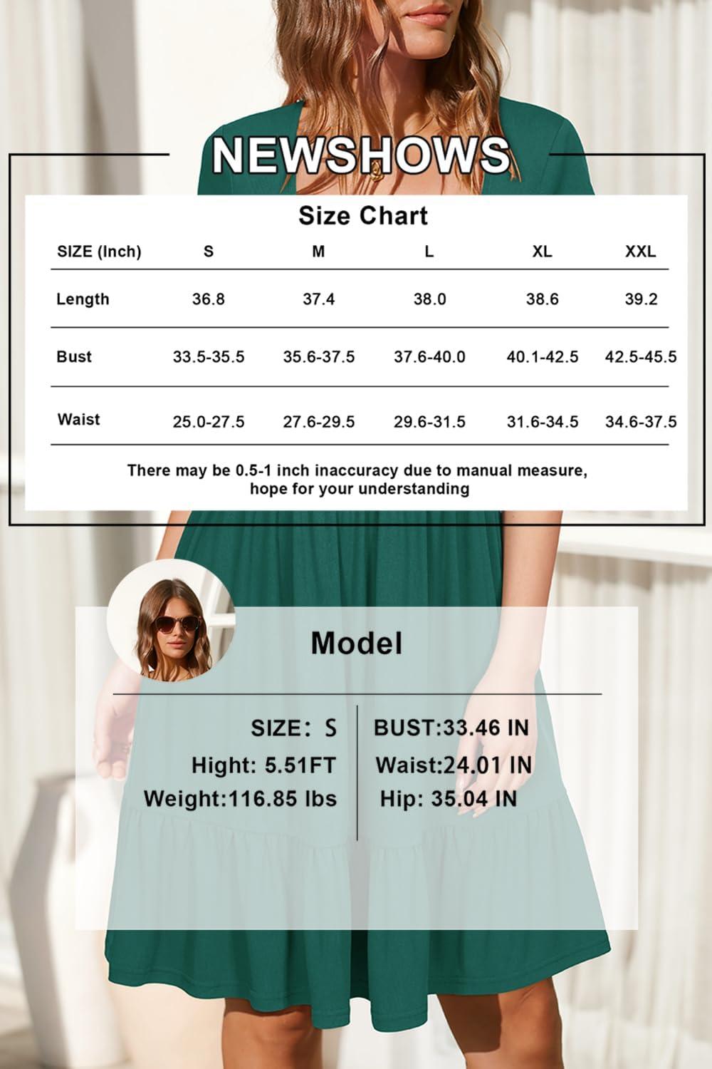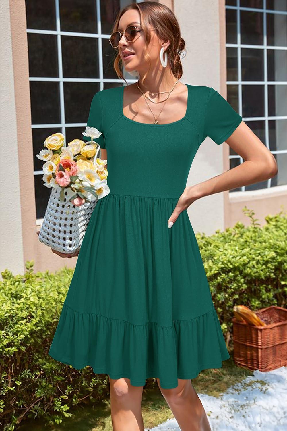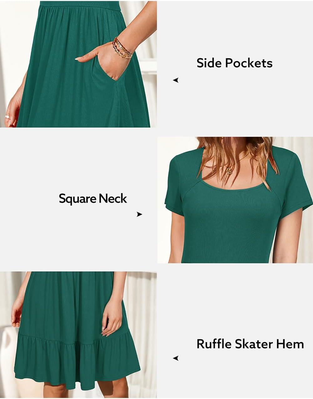 Newshows Women 2025 Summer Dress Square Neck Formal Short Sleeve Business Casual Outfits Ruffle Spring Pockets Sundress(Teal Green)