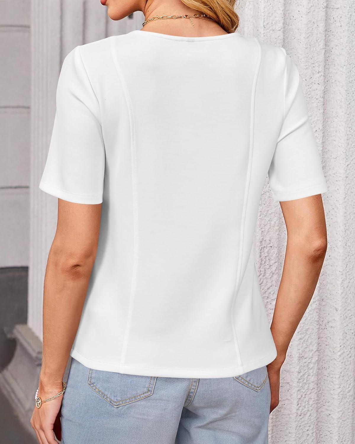 Newshows Women Off Shoulder/Crewneck 2025 Summer Blouses Tops Business Casual Outfits Trendy(White-1)