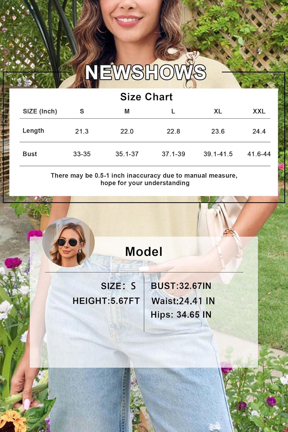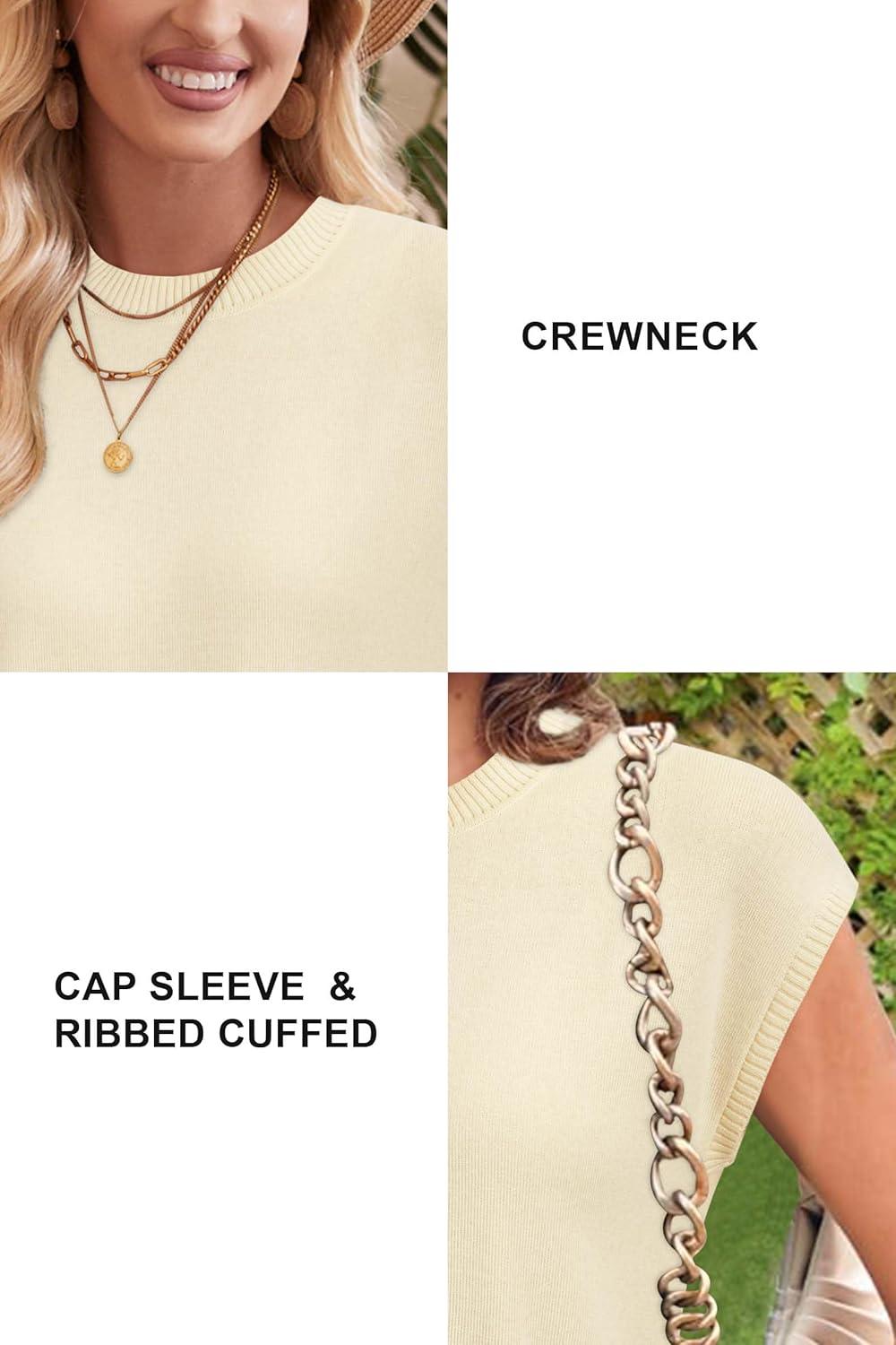 Newshows Womens 2024 Summer Tops Spring Sweater Vest Cap Sleeve Crewneck Business Casual Outfits Knit Dressy Shirts Trendy(Apricot)