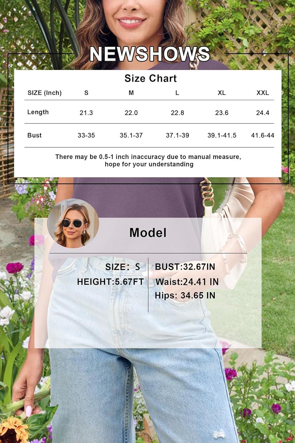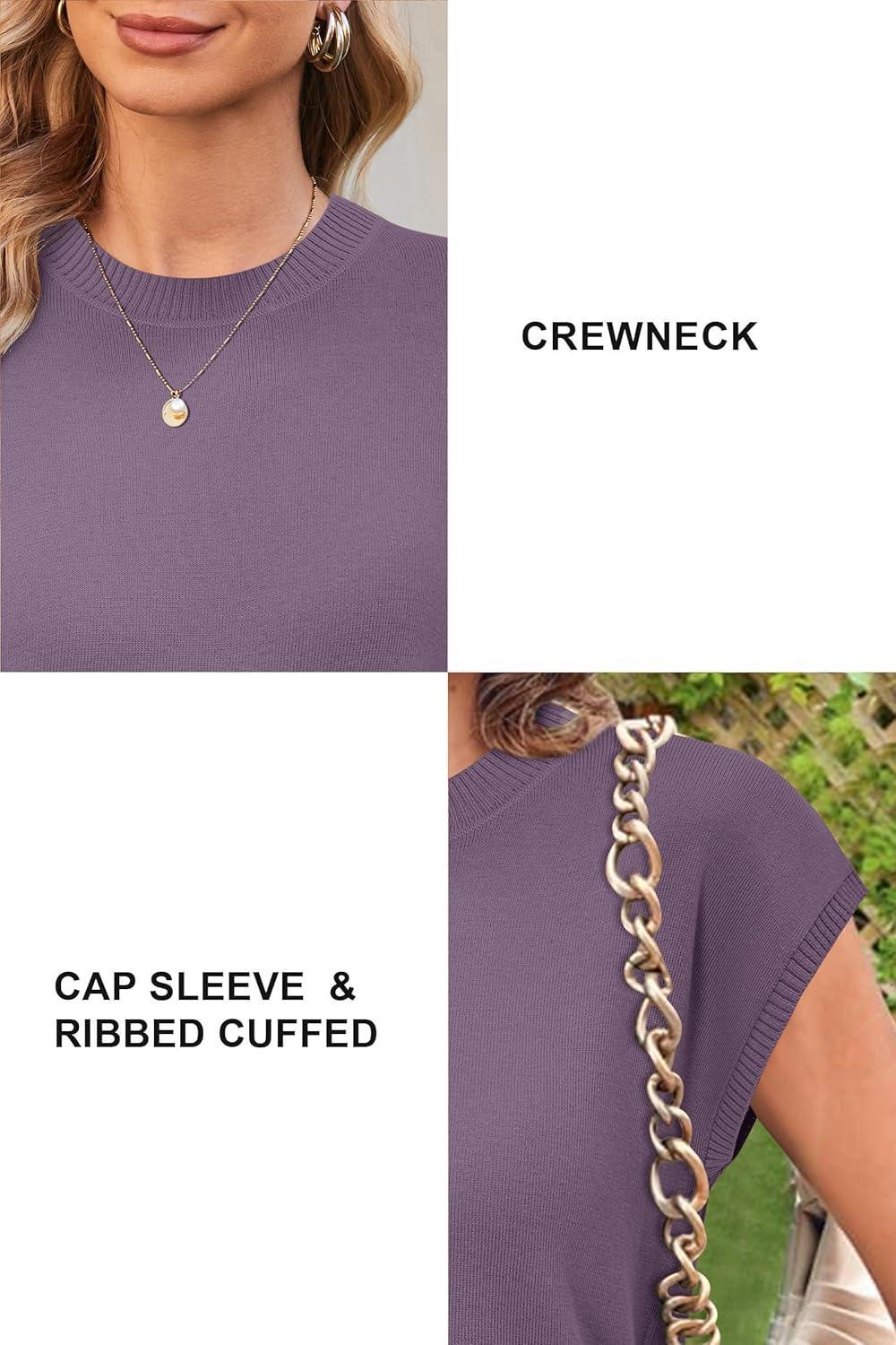 Newshows Womens 2024 Summer Tops Spring Sweater Vest Cap Sleeve Crewneck Business Casual Outfits Knit Dressy Shirts Trendy(Purple)