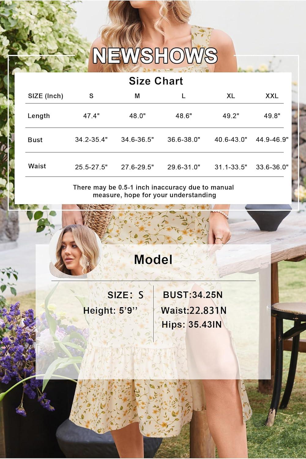 Newshows Womens 2025 Summer Beach Floral Midi Dress Spring Vacation Outfits Square Neck Ruffle Split Sundress(Yellow Jasmine)