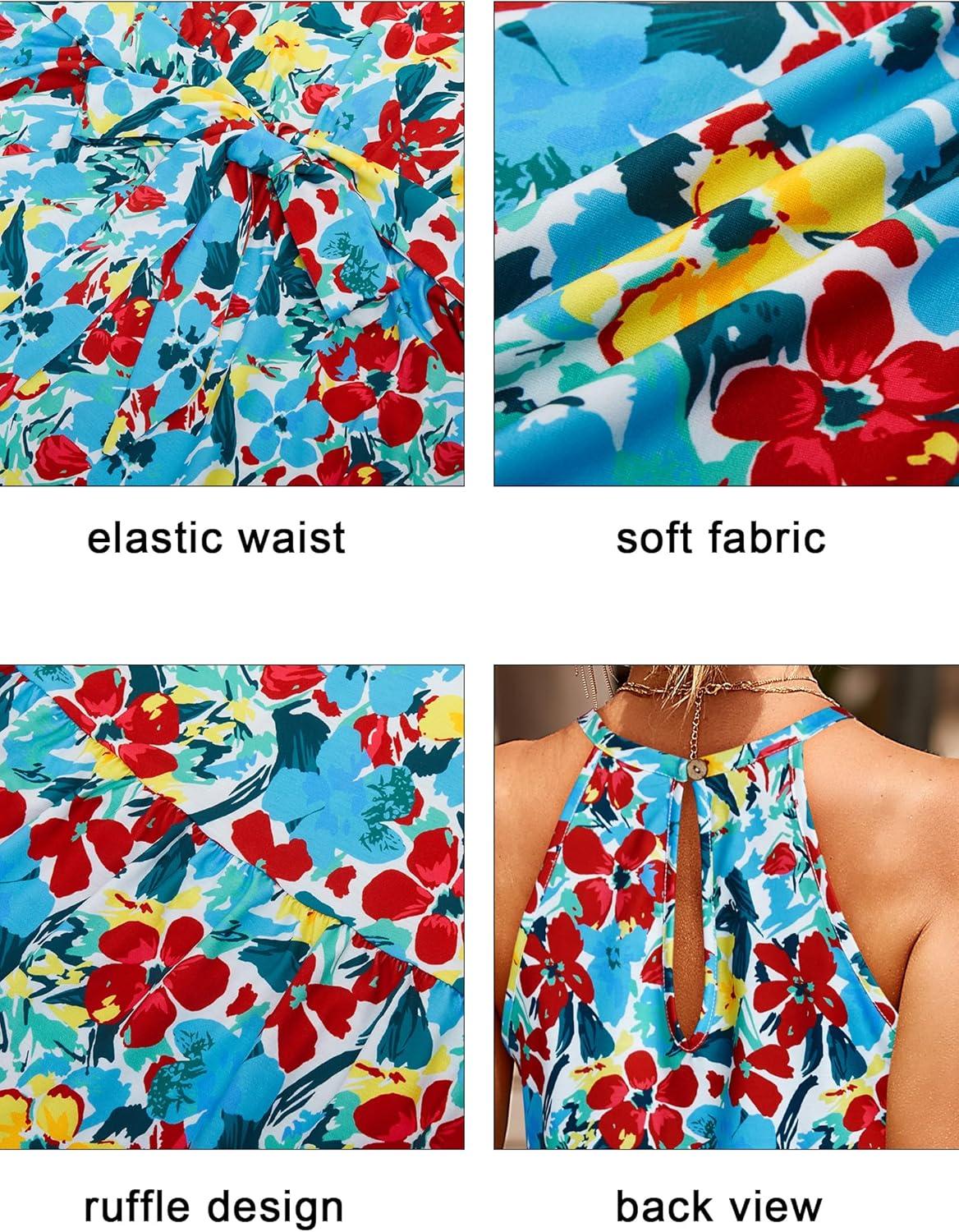 Newshows Womens 2025 Summer Dress Halter Wedding Guest Casual Beach Vacation Outfits Belted Sundresses with Pockets(Blue Floral Red)