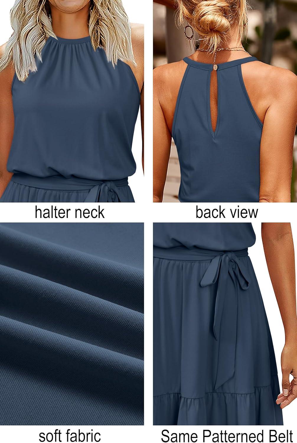 Newshows Womens 2025 Summer Dress Halter Wedding Guest Casual Beach Vacation Outfits Belted Sundresses with Pockets(Dark Blue)