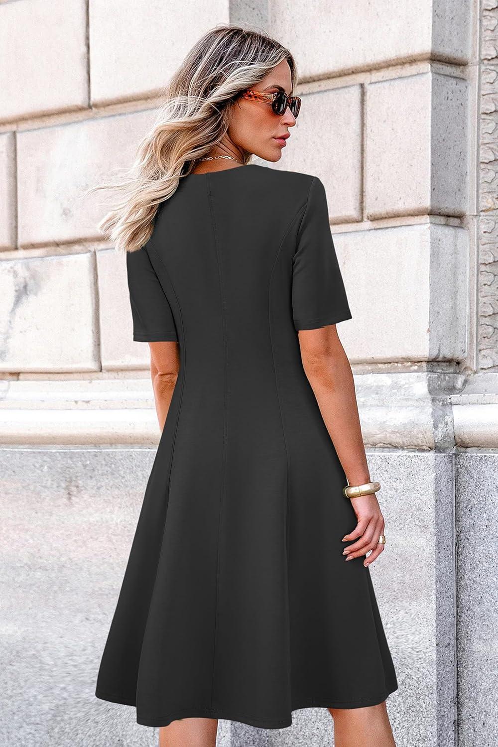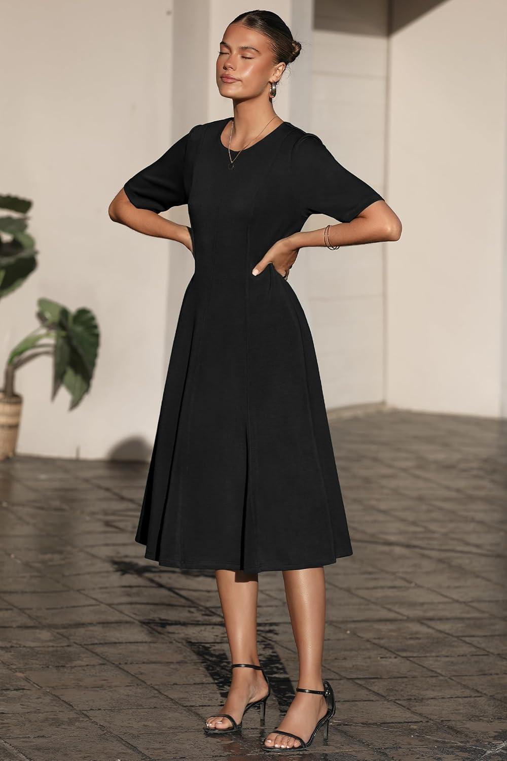 Newshows Womens 2025 Summer Teacher Work Modest Dresses Ultra Soft Short Sleeve Midi Old Money Clothes Business Casual Dress(Charcoal-black)