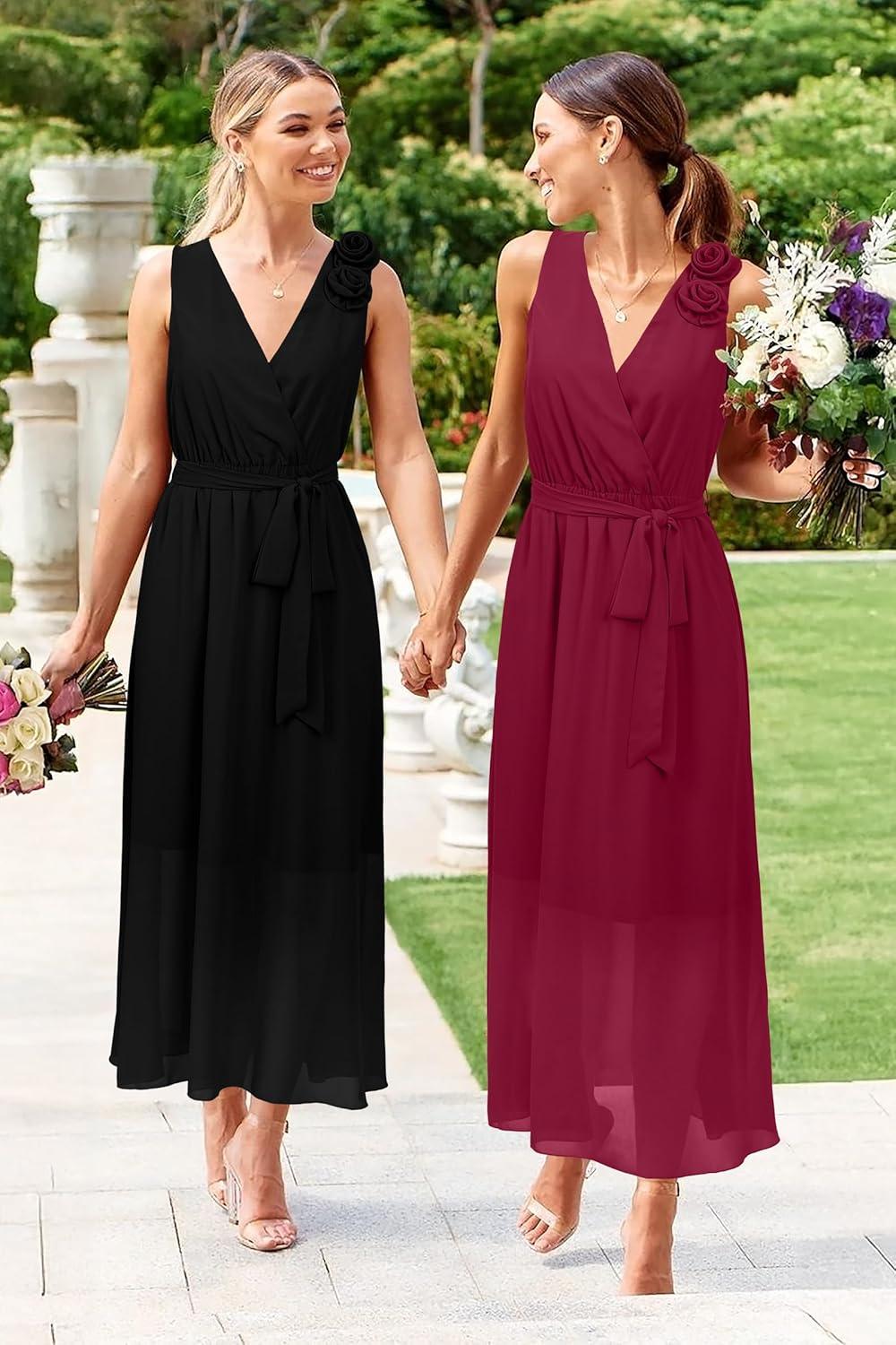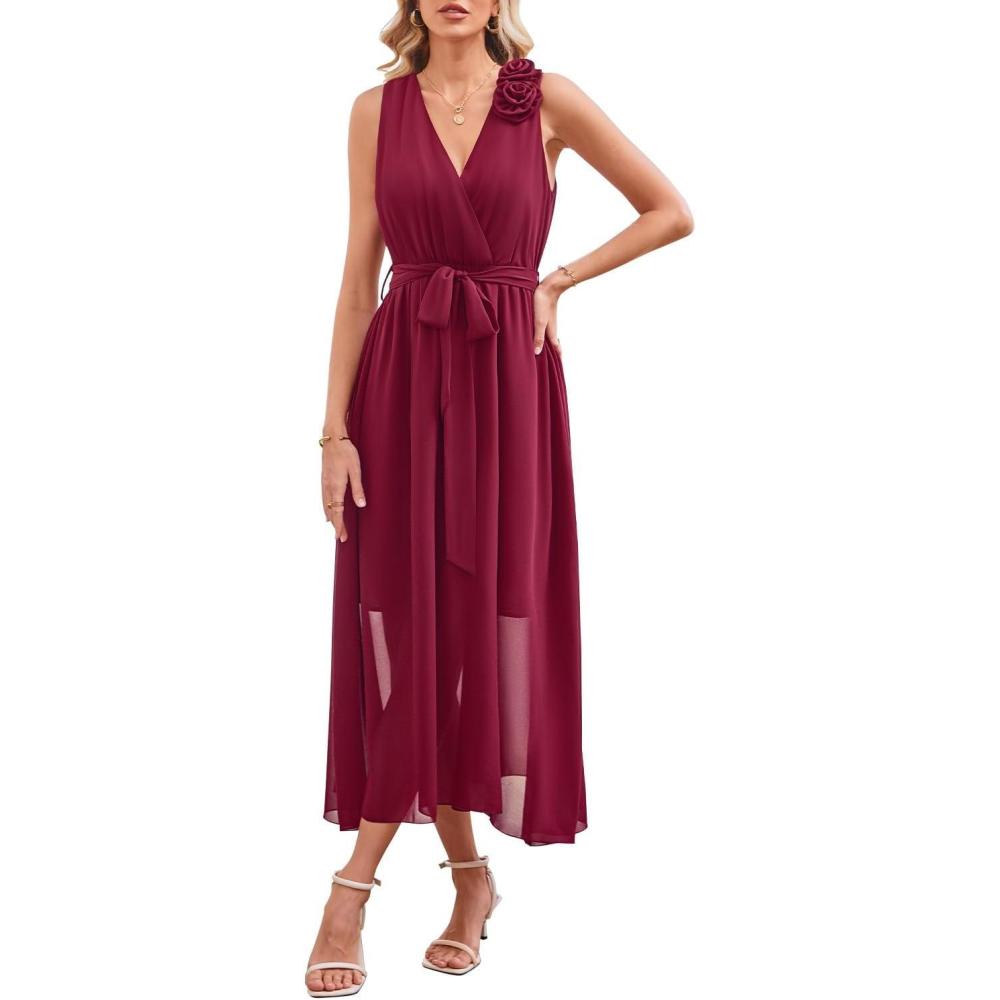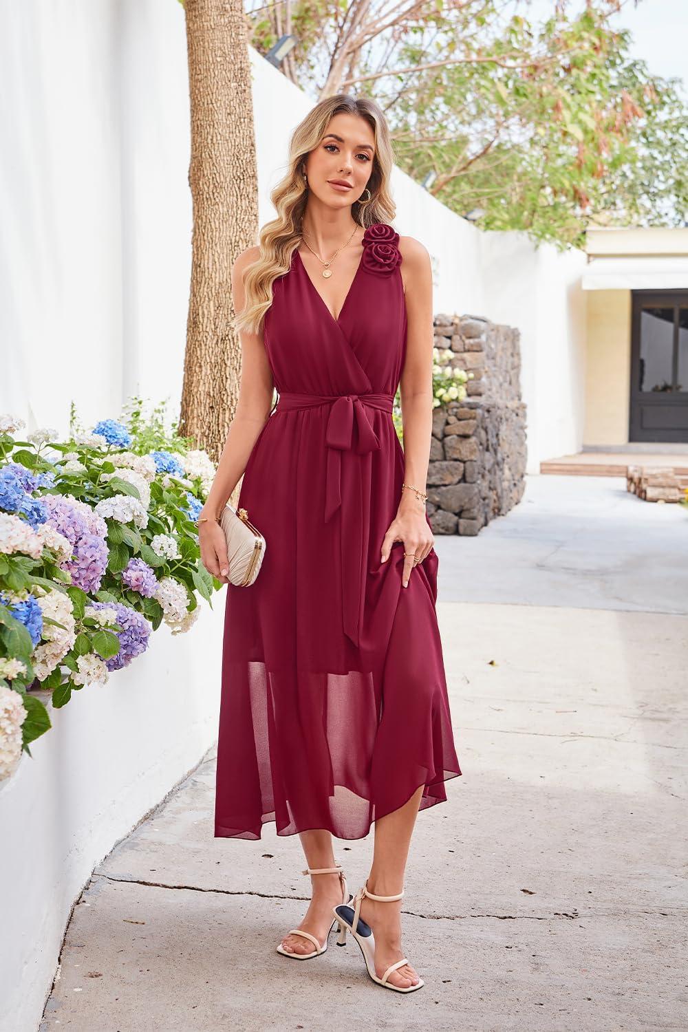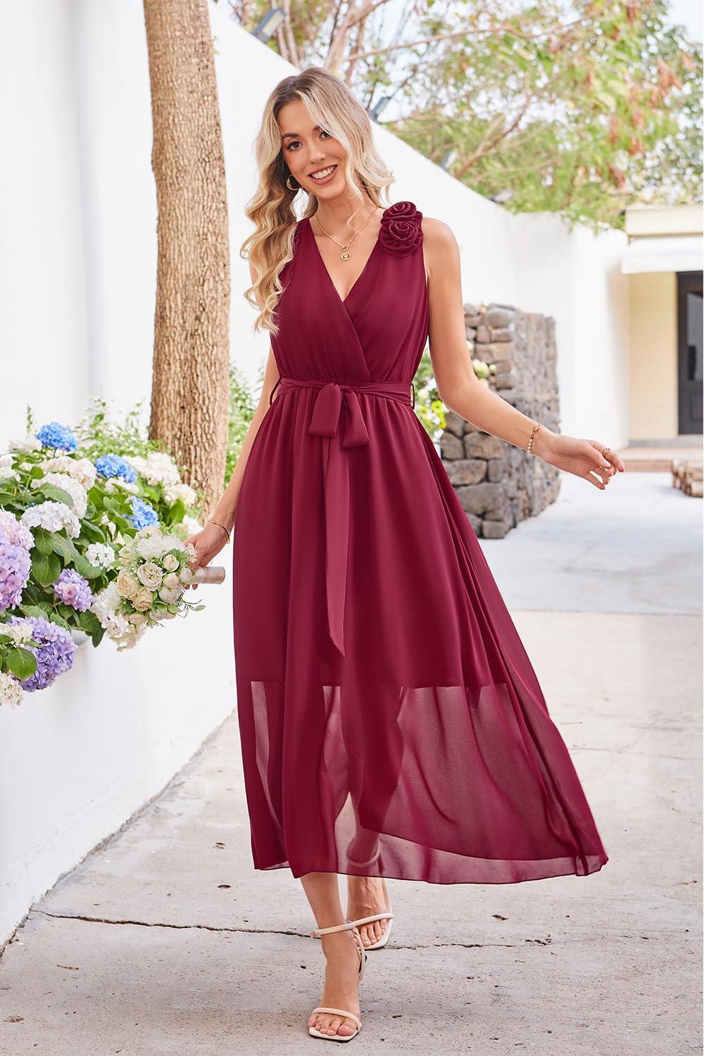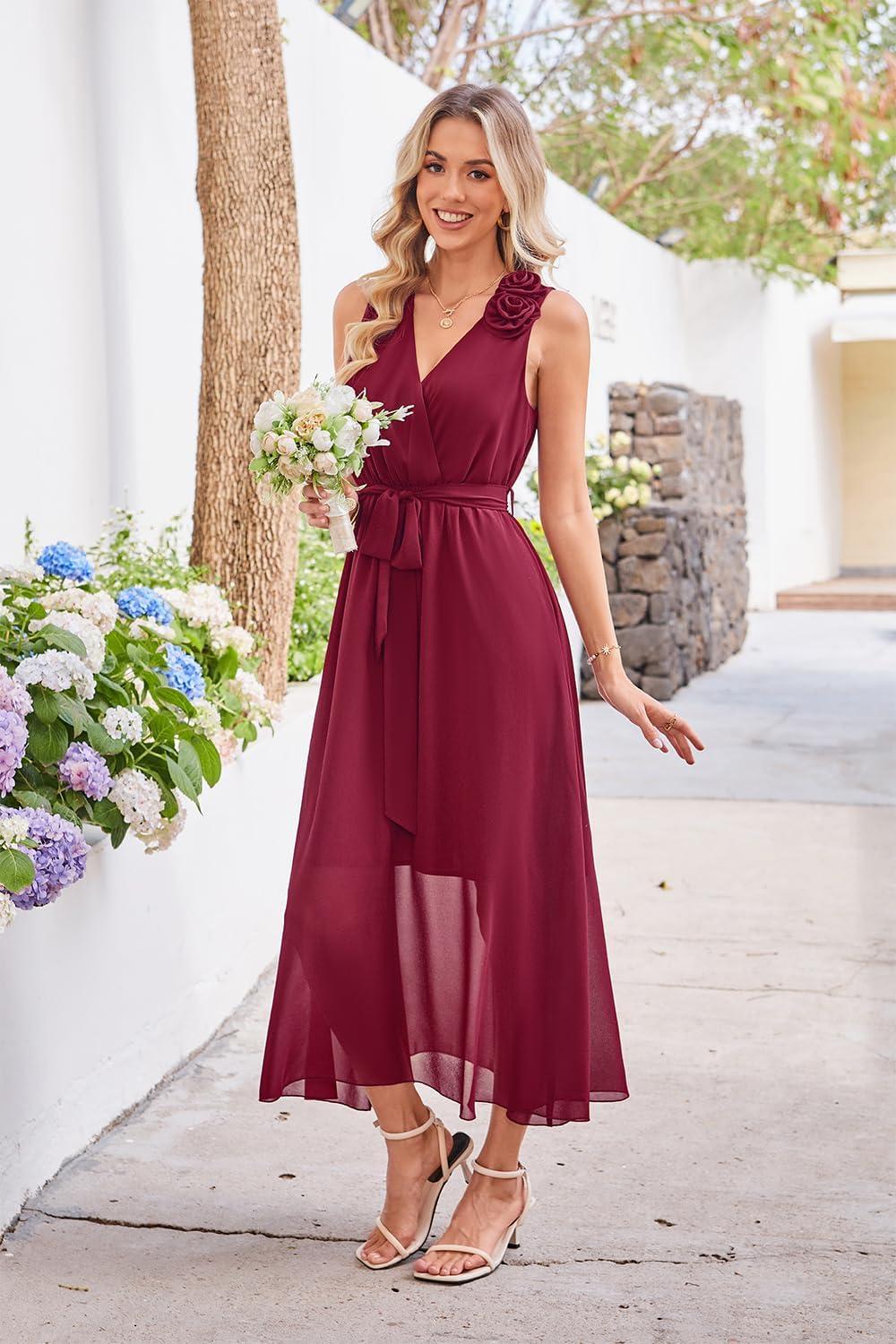 Newshows Womens 2025 Summer Wedding Guest Bridesmaid V Neck Sleeveless Long Formal Evening Party Maxi Dress(Dark Red)