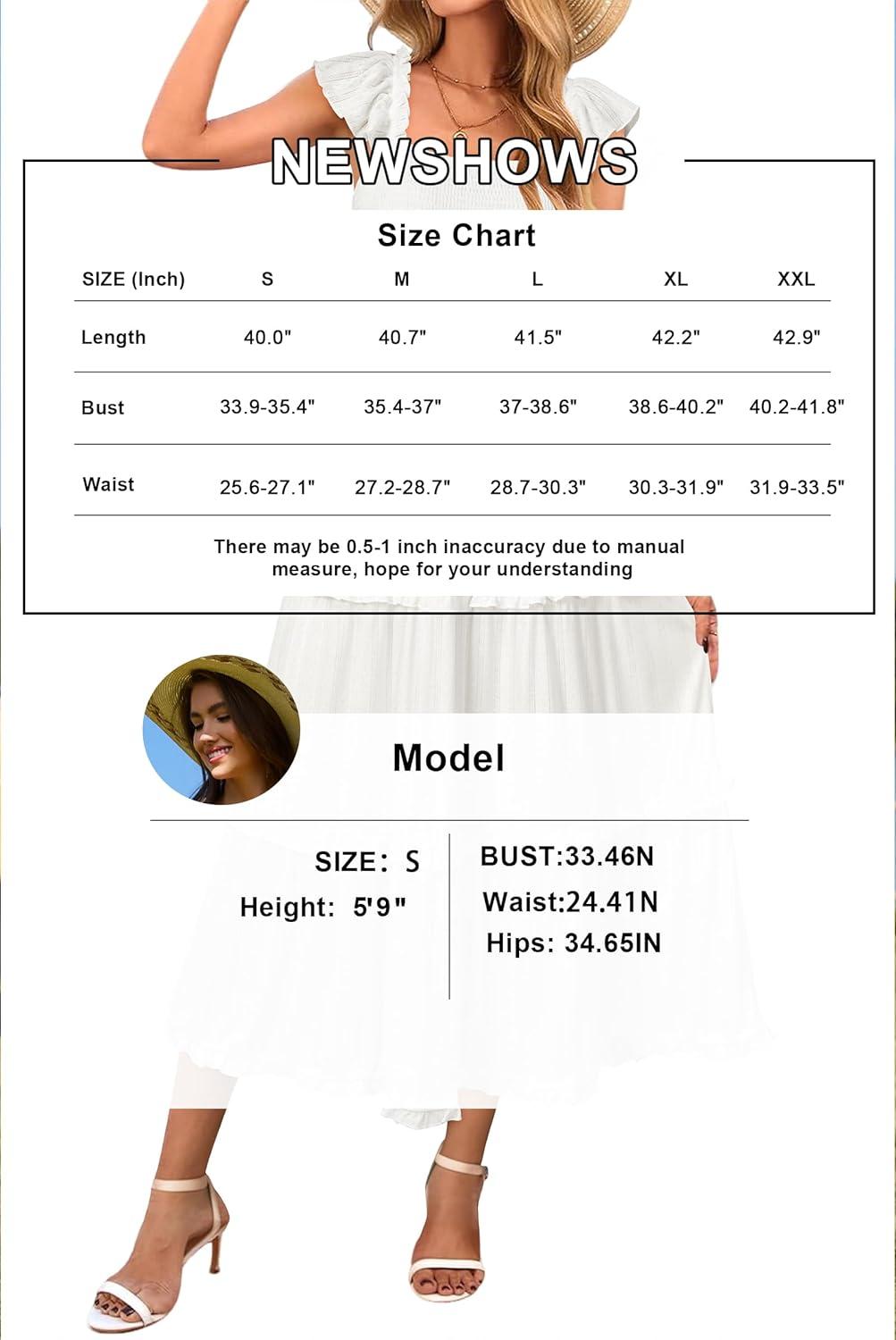 Newshows Women’s 2025 Summer Wedding Guest Dress Ruffle Sleeve Smocked Square Neck Long Flowy Tiered Maxi Sundress(White)