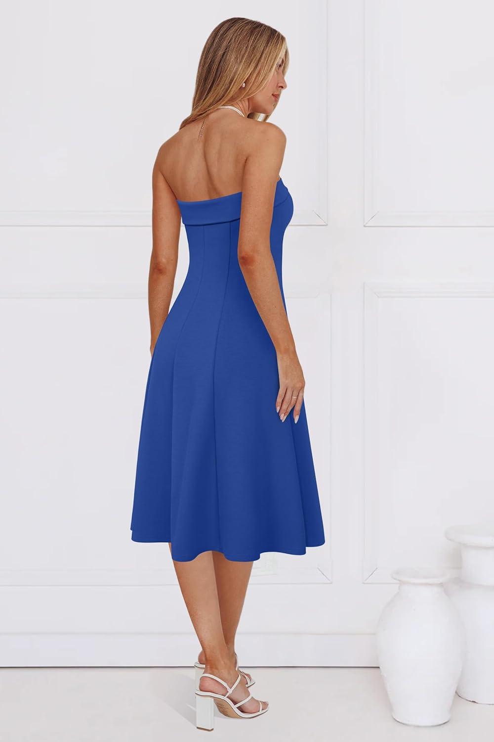 Newshows Womens Cocktail Dress Strapless Tube Formal Wedding Guest Prom Party Dress(Blue)
