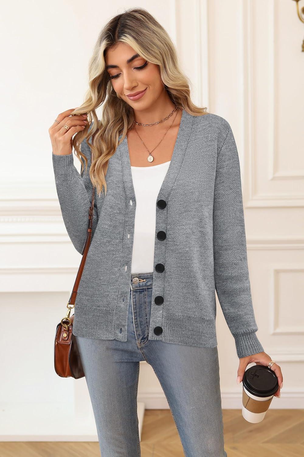 Newshows Womens Fall Fashion 2024 Wool Blended Cardigan Sweater Button Down Long Sleeve Knit Outerwear Coats(Grey)