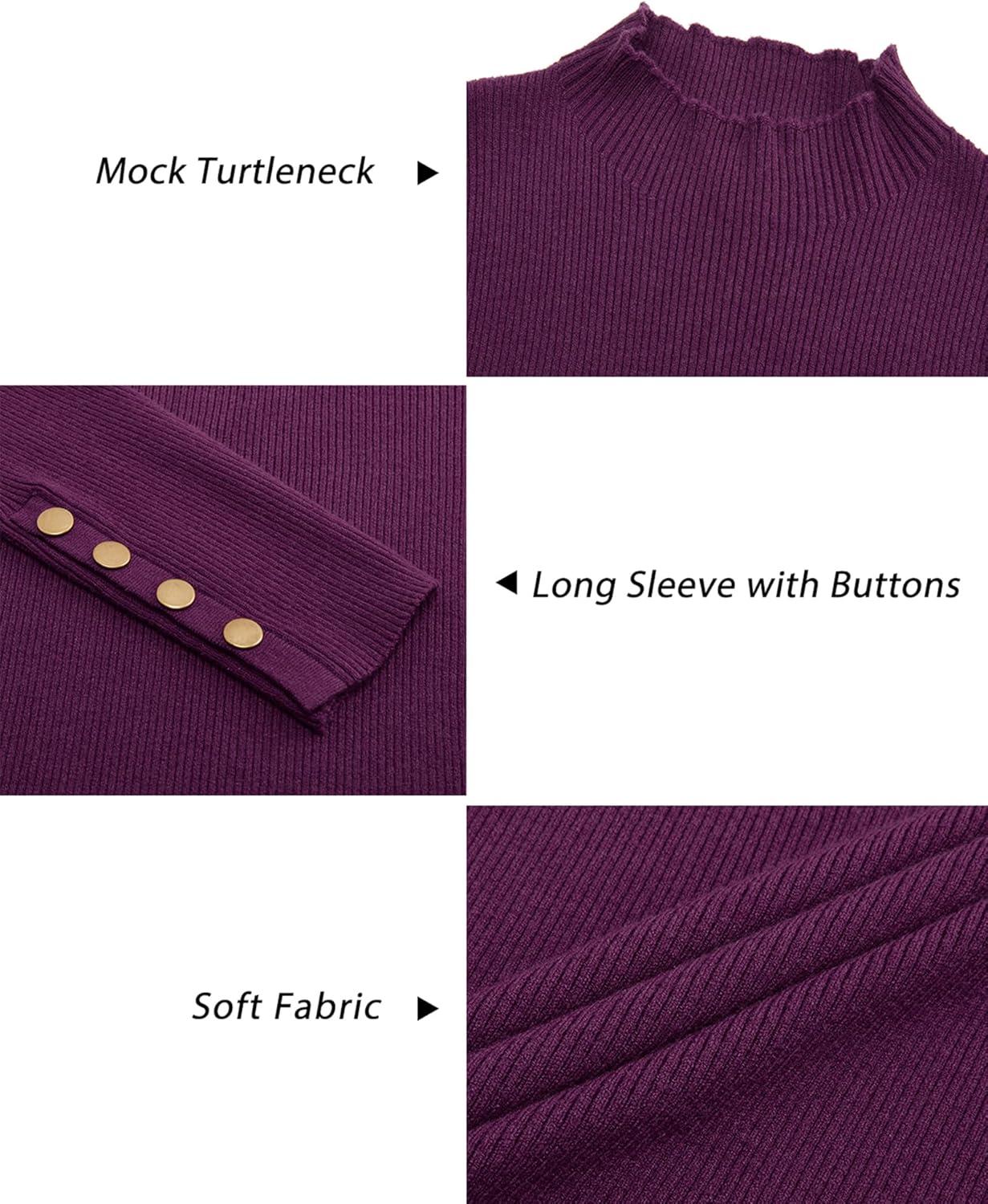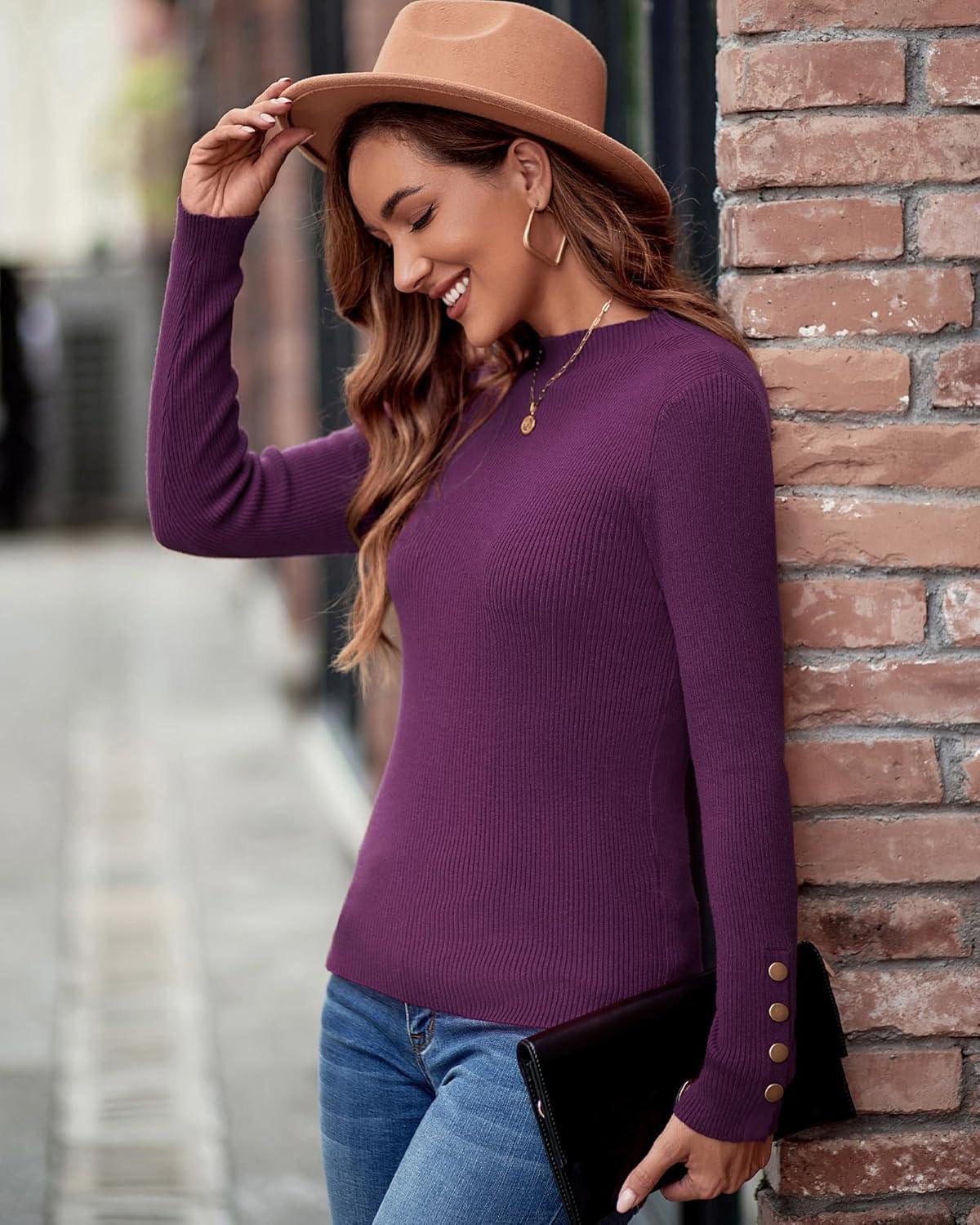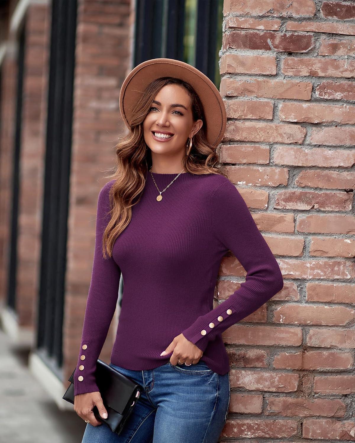 Newshows Women’s Fall Fashion Sweater 2025 Long Sleeve Crew Neck Button Stretch Business Casual Work Tops(A1-purple)