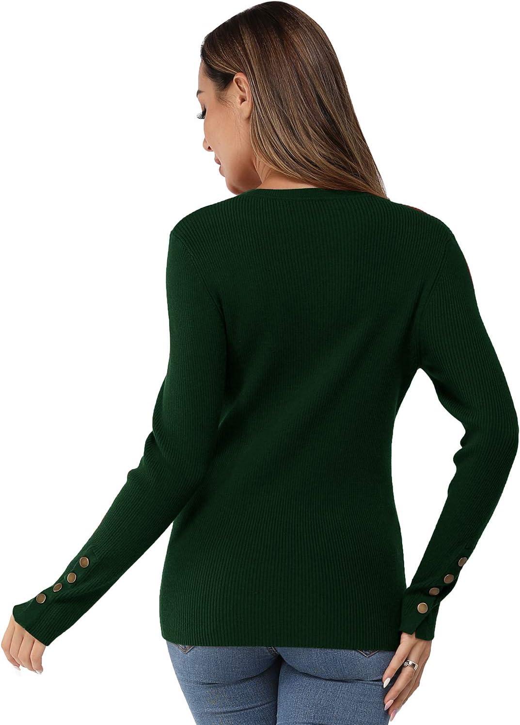 Newshows Women’s Fall Fashion Sweater 2025 Long Sleeve Crew Neck Button Stretch Business Casual Work Tops(Army Green)