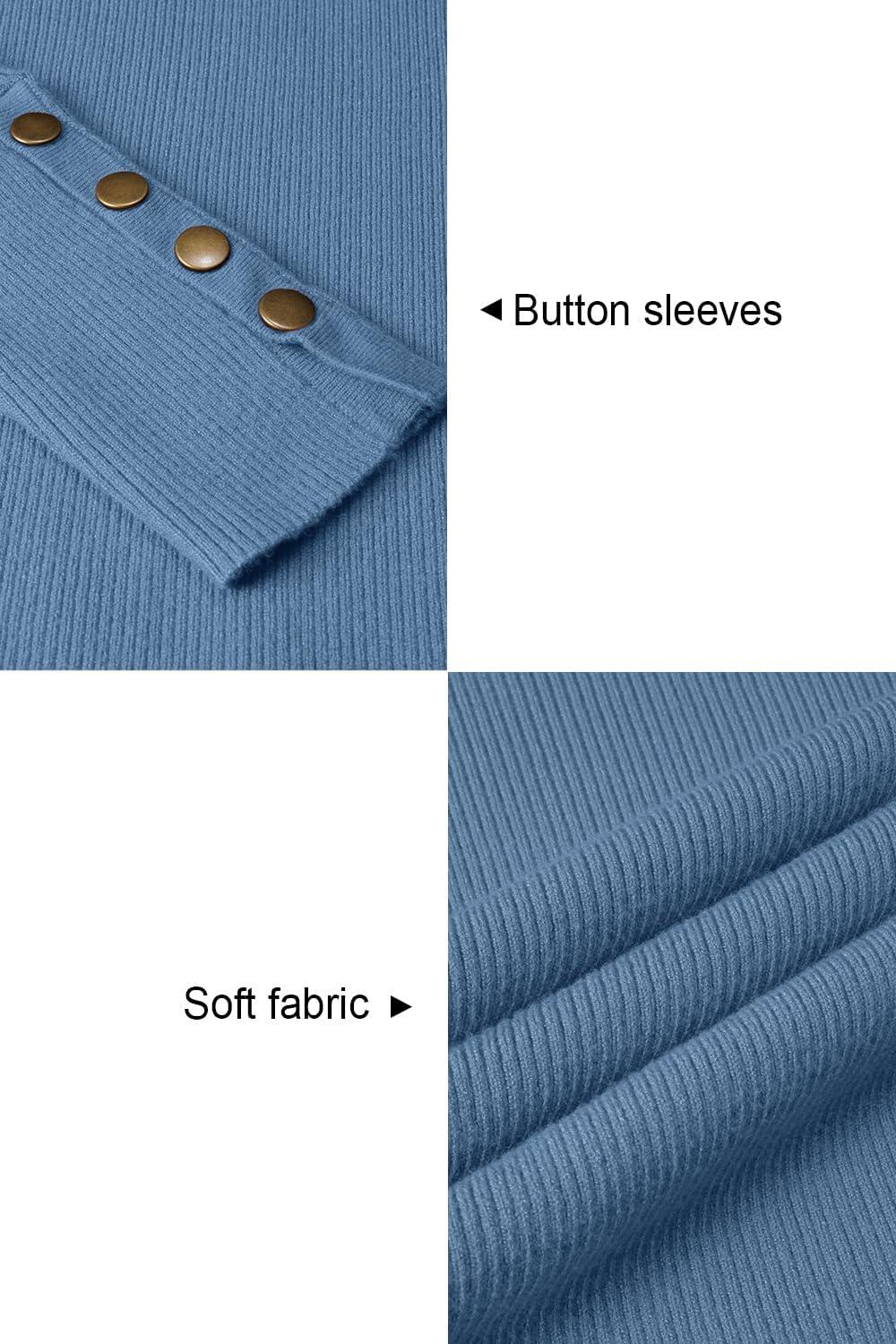 Newshows Women’s Fall Fashion Sweater 2025 Long Sleeve Crew Neck Button Stretch Business Casual Work Tops(Blue-1)