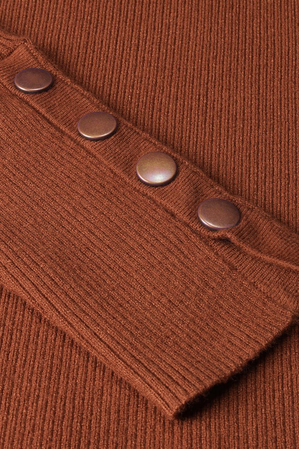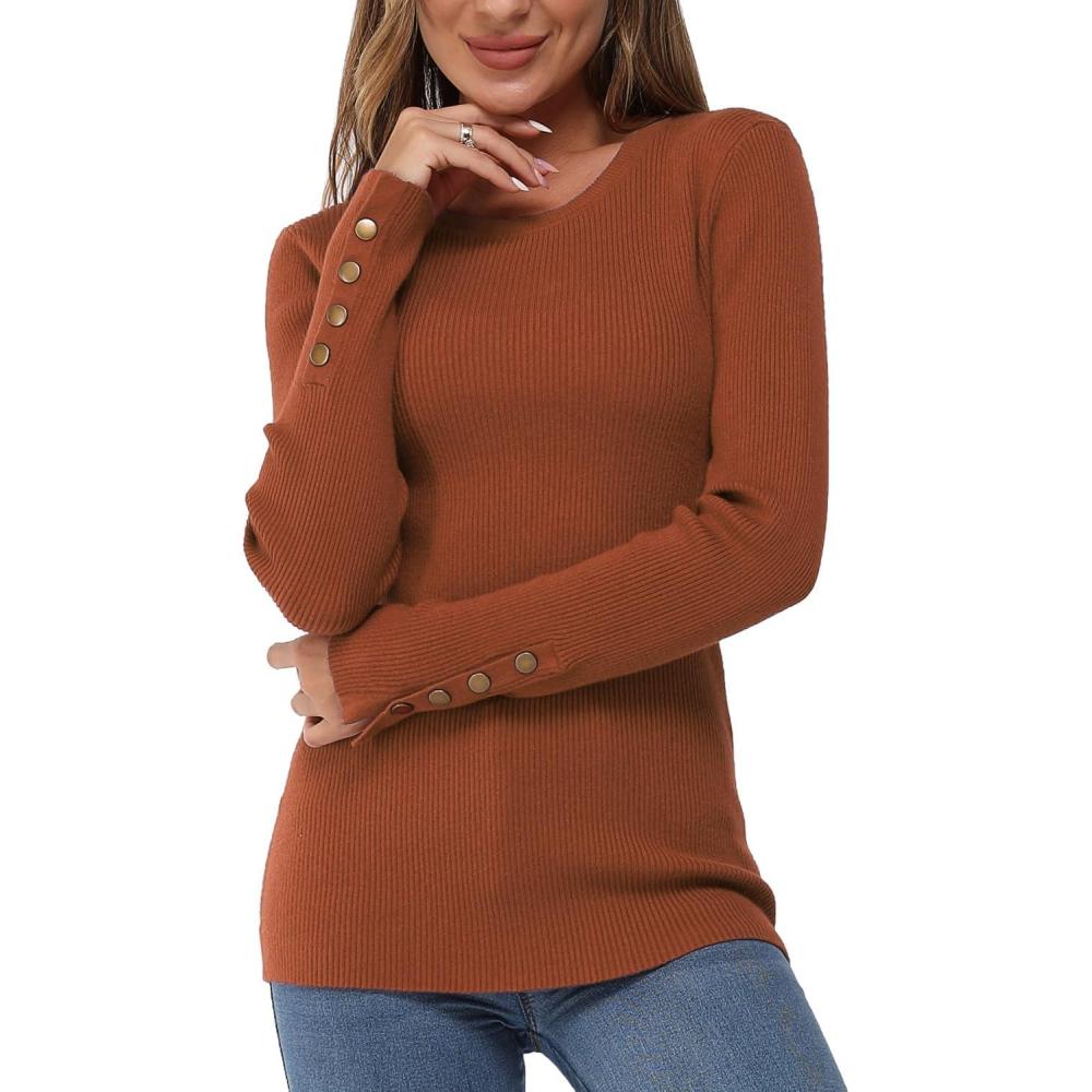 Newshows Women’s Fall Fashion Sweater 2025 Long Sleeve Crew Neck Button Stretch Business Casual Work Tops(Caramel Red)