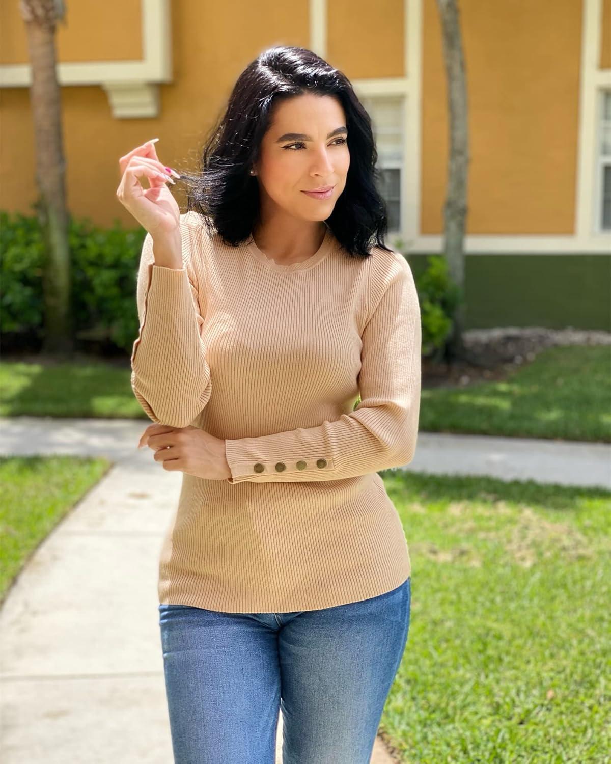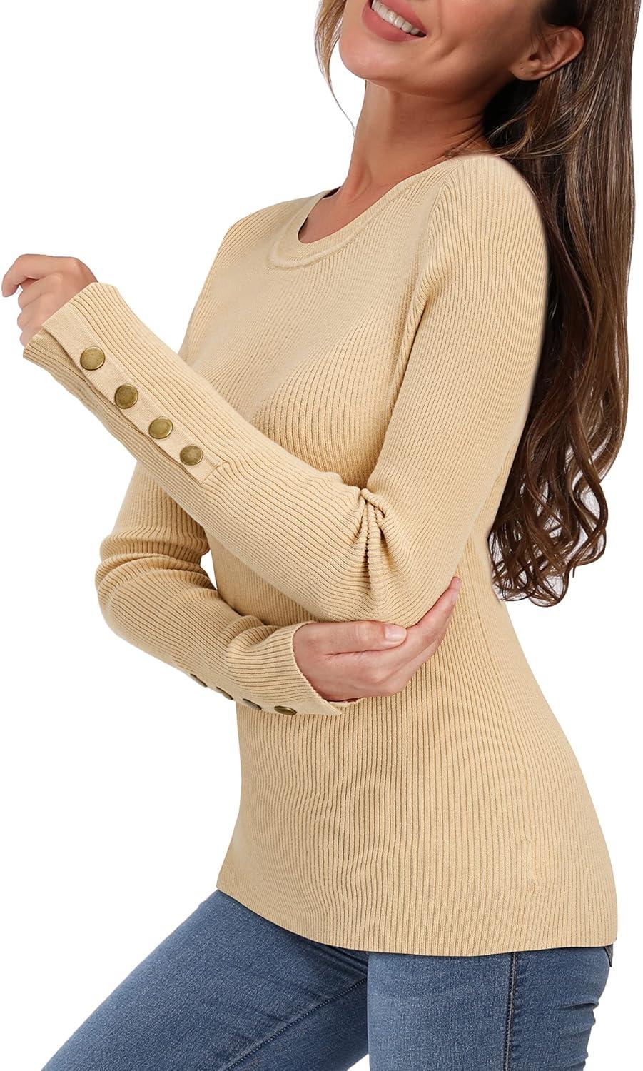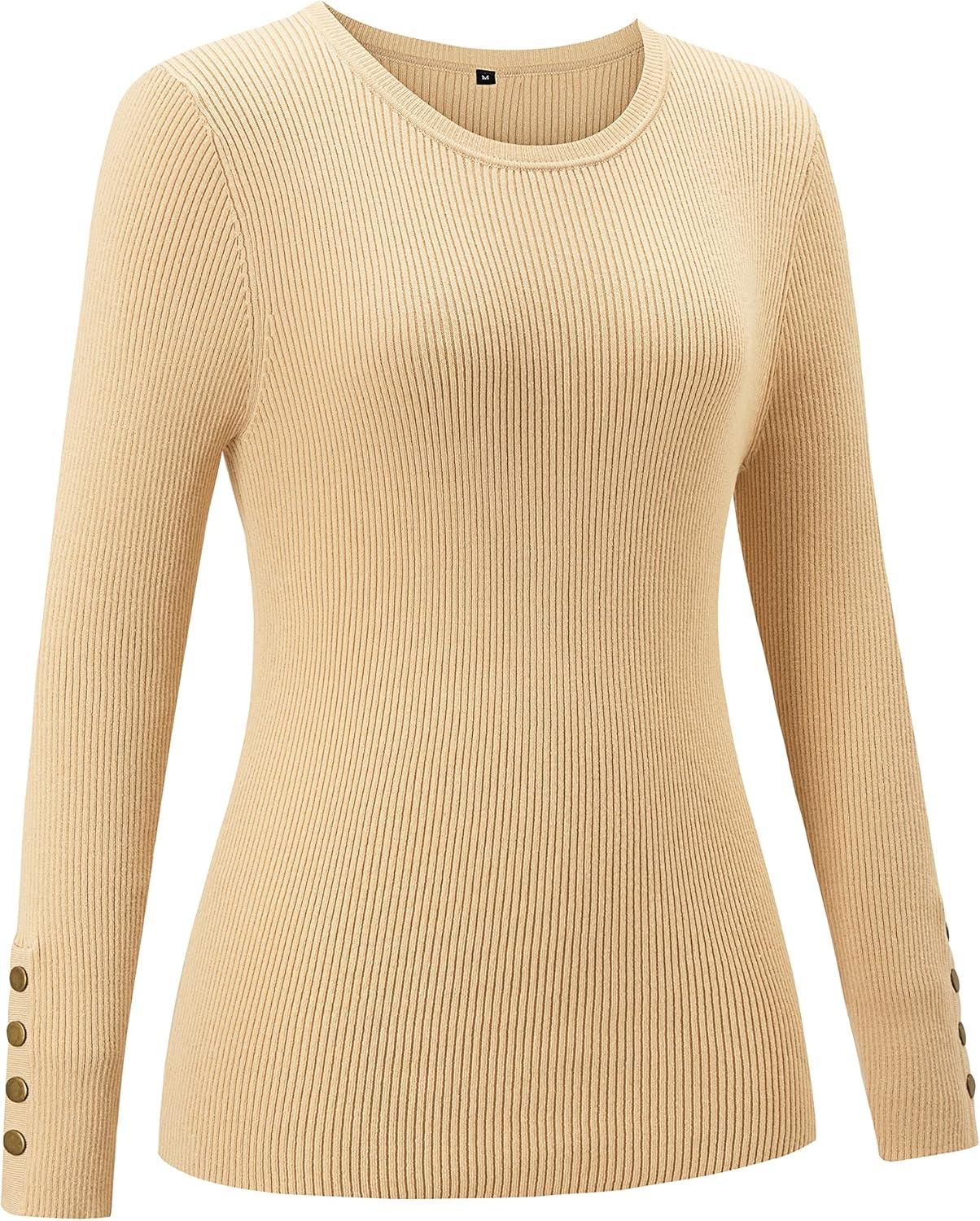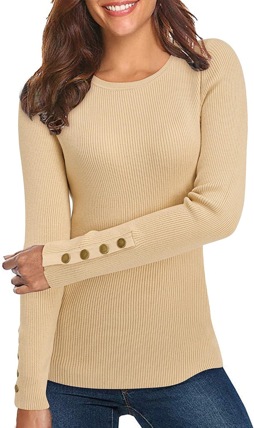 Newshows Women’s Fall Fashion Sweater 2025 Long Sleeve Crew Neck Button Stretch Business Casual Work Tops(Dark Apricot)
