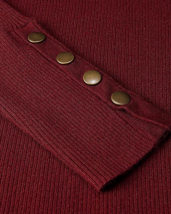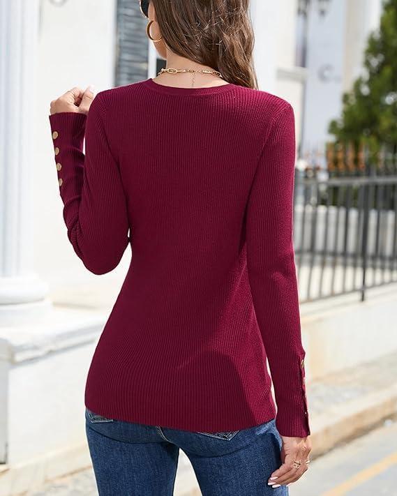 Newshows Women’s Fall Fashion Sweater 2025 Long Sleeve Crew Neck Button Stretch Business Casual Work Tops(Dark Red)