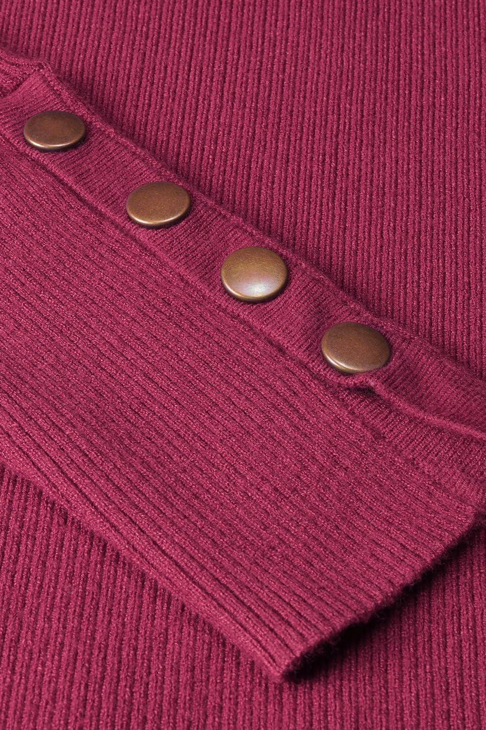 Newshows Women’s Fall Fashion Sweater 2025 Long Sleeve Crew Neck Button Stretch Business Casual Work Tops(Hot Pink Green)