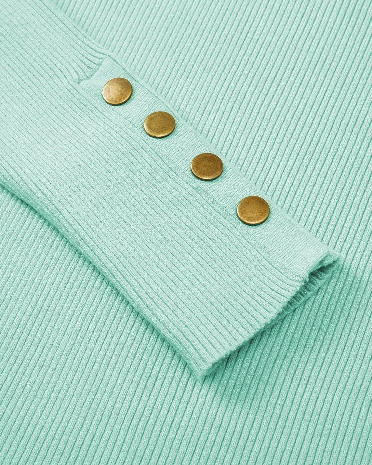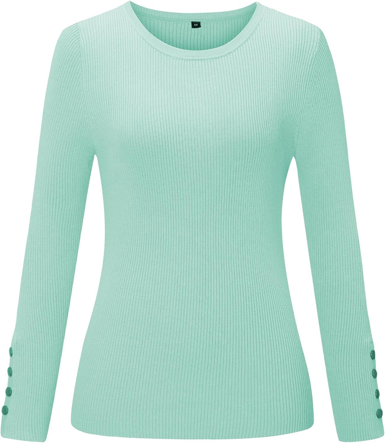 Newshows Women’s Fall Fashion Sweater 2025 Long Sleeve Crew Neck Button Stretch Business Casual Work Tops(Light Blue)
