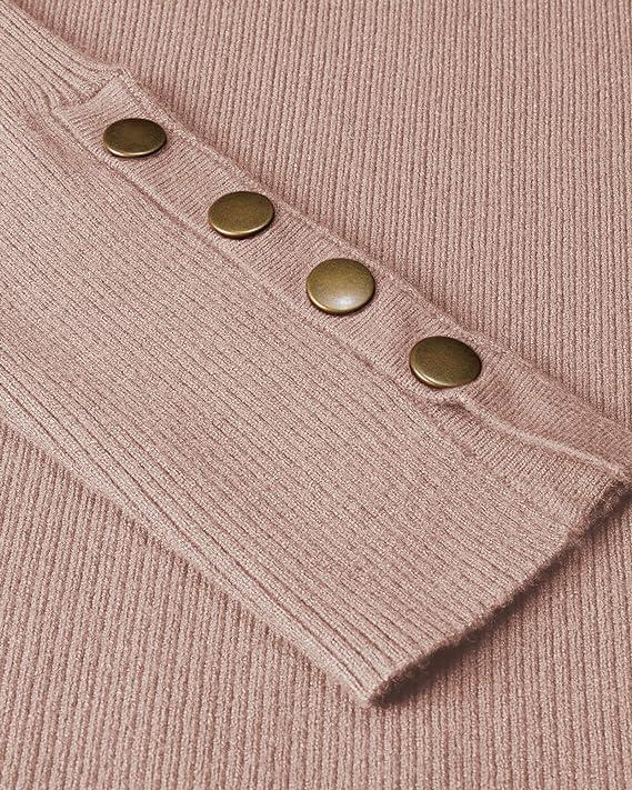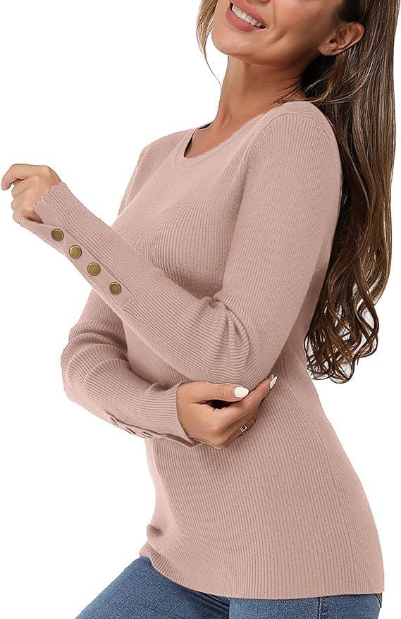 Newshows Women’s Fall Fashion Sweater 2025 Long Sleeve Crew Neck Button Stretch Business Casual Work Tops(Pink)