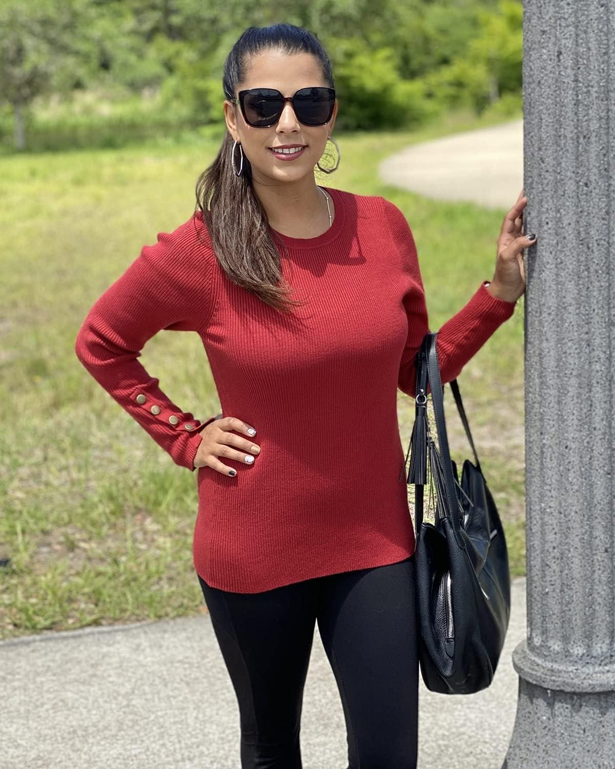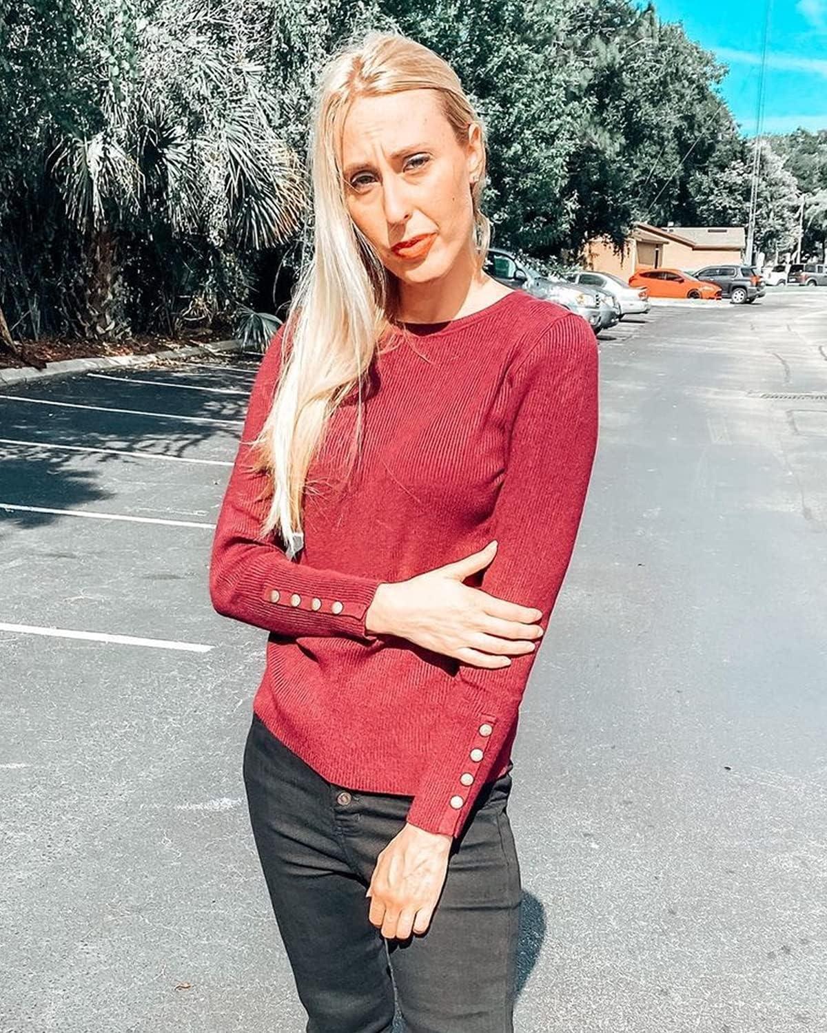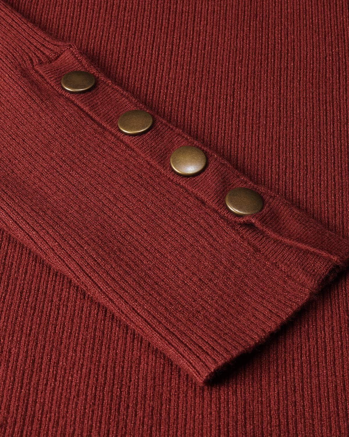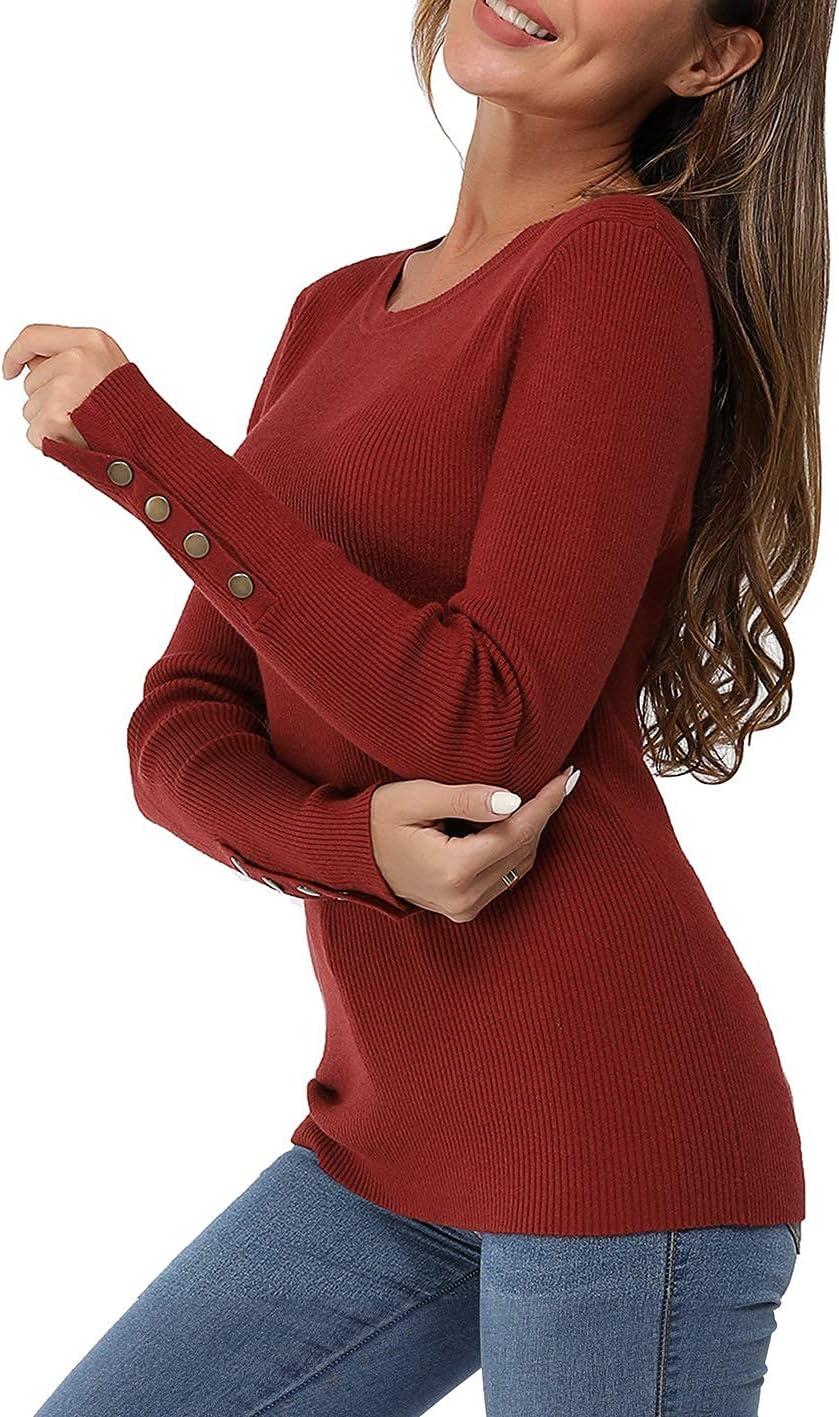 Newshows Women’s Fall Fashion Sweater 2025 Long Sleeve Crew Neck Button Stretch Business Casual Work Tops(Purplish Red)