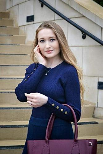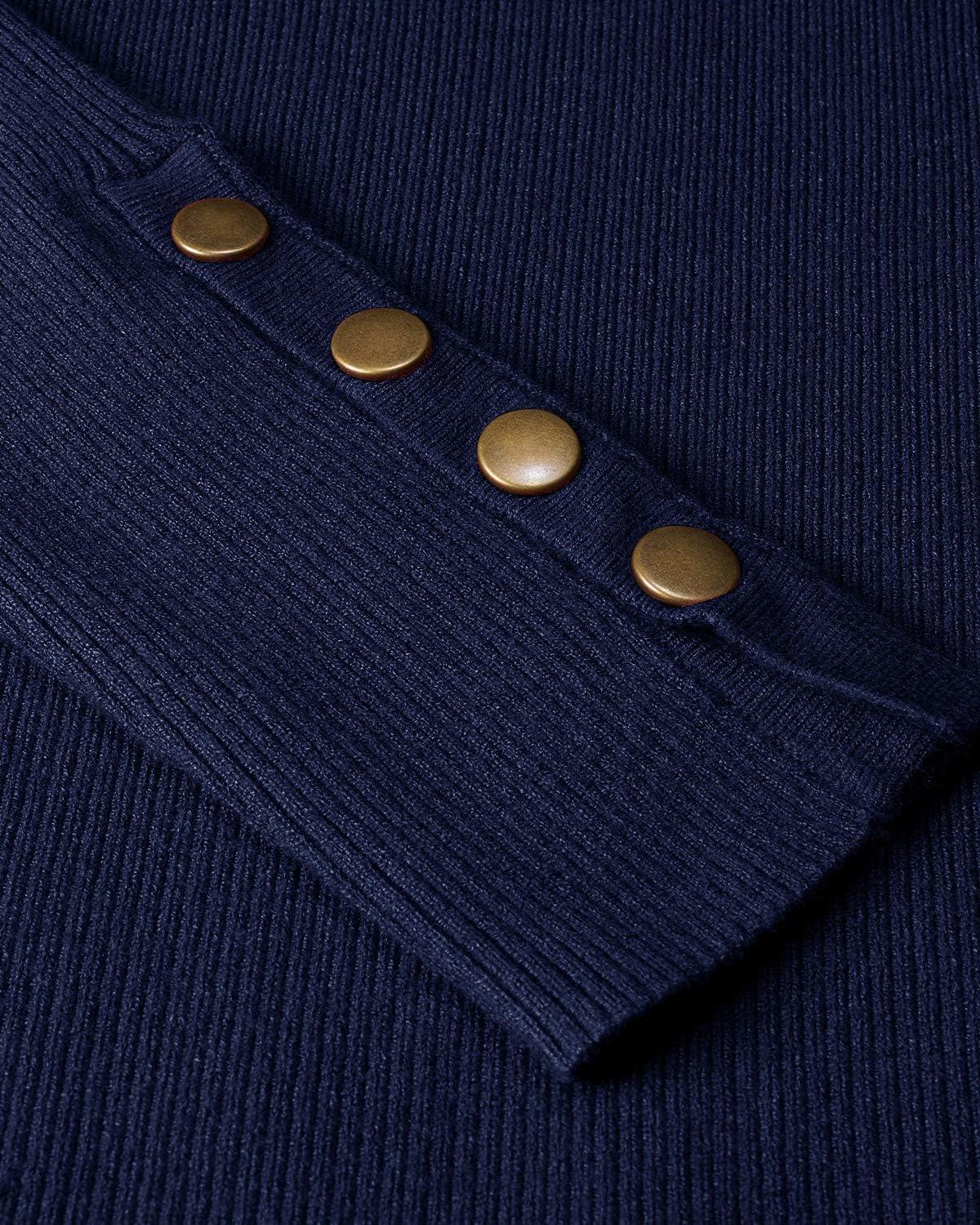Newshows Women’s Fall Fashion Sweater 2025 Long Sleeve Crew Neck Button Stretch Business Casual Work Tops(Sapphire)