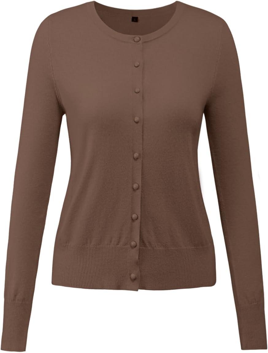 Newshows Women’s Lightweight Button Down Cardigan Long Sleeve Casual Crew Neck Soft Knit Cardigans Sweater Tops(Black Coffee)