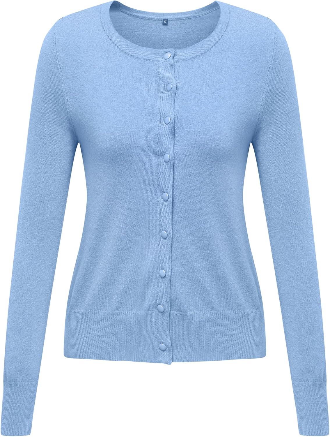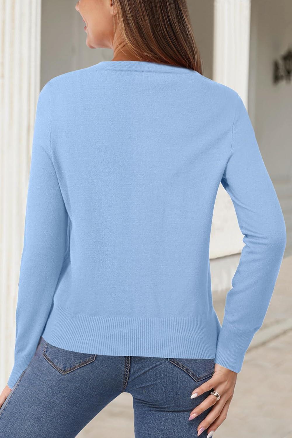 Newshows Women’s Lightweight Button Down Cardigan Long Sleeve Casual Crew Neck Soft Knit Cardigans Sweater Tops(Light Blue)