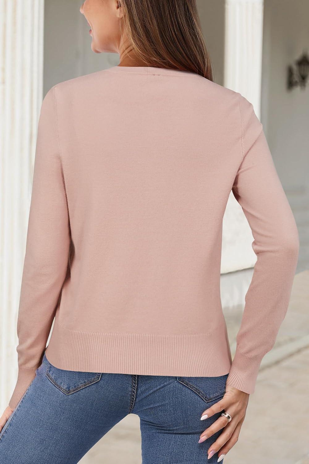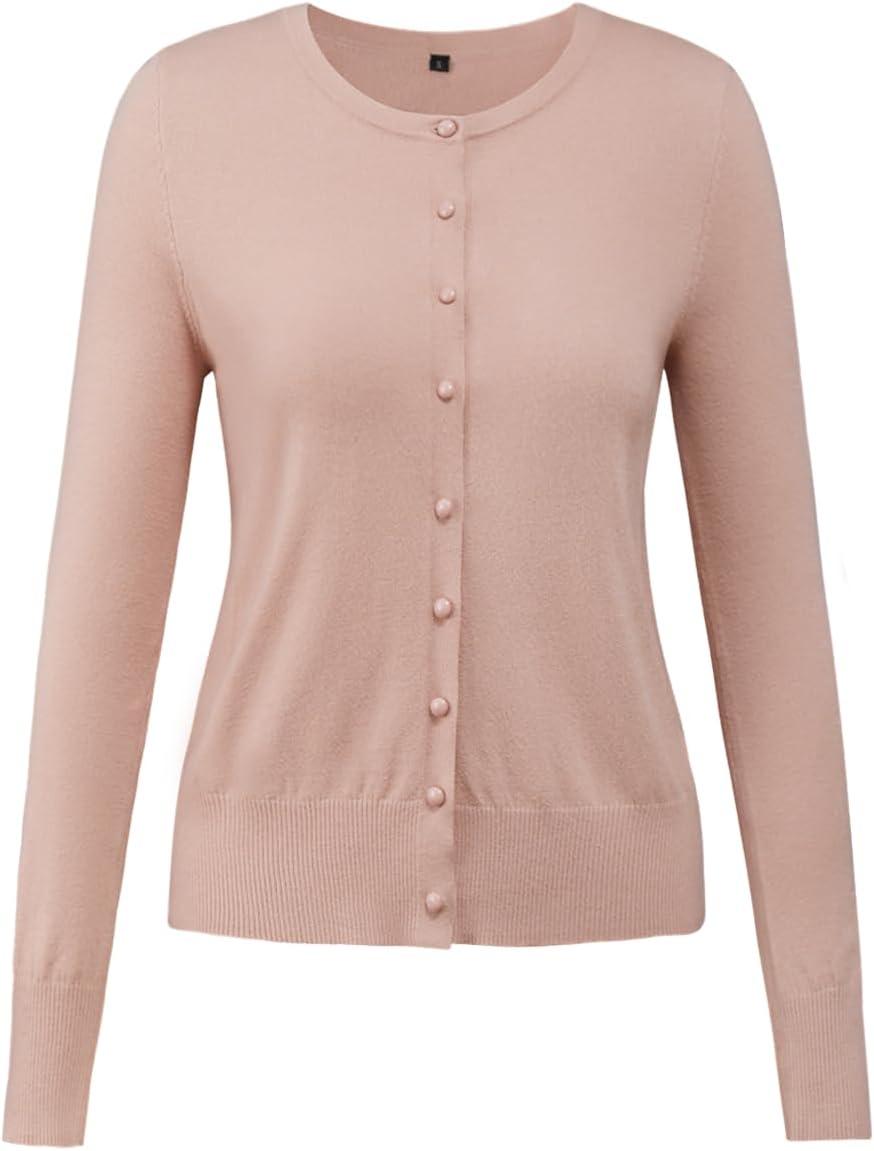 Newshows Women’s Lightweight Button Down Cardigan Long Sleeve Casual Crew Neck Soft Knit Cardigans Sweater Tops(Pale Pink)