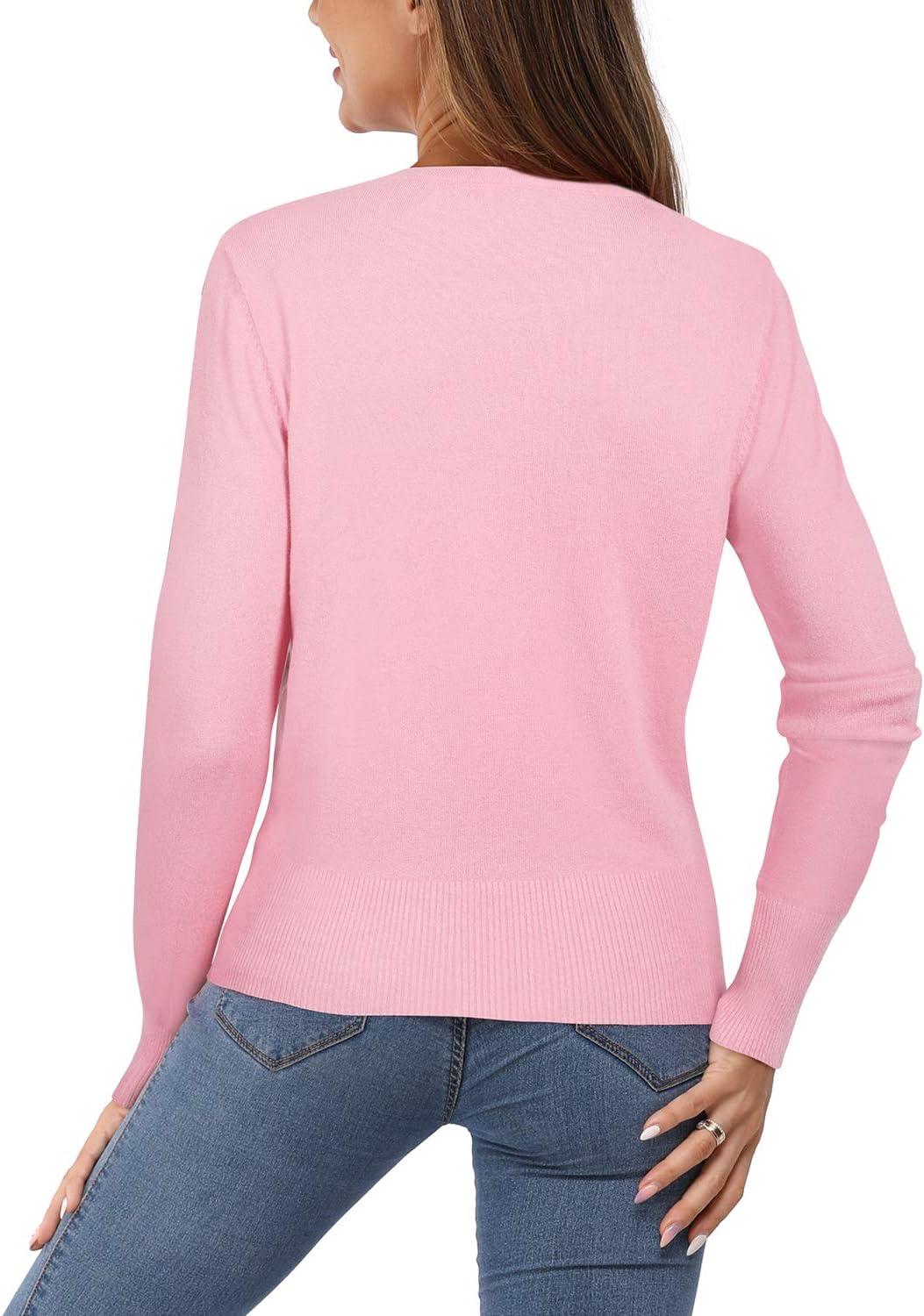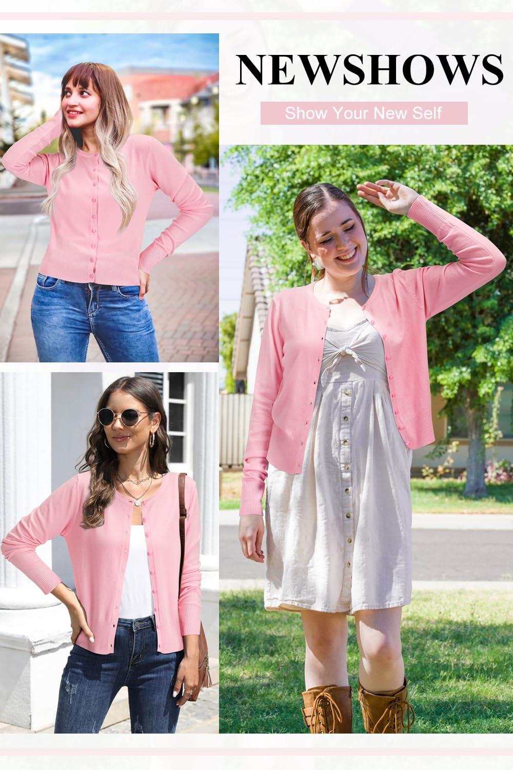 Newshows Women’s Lightweight Button Down Cardigan Long Sleeve Casual Crew Neck Soft Knit Cardigans Sweater Tops(Pink)