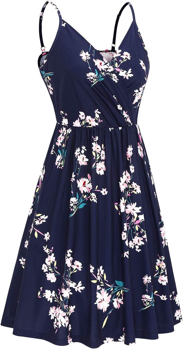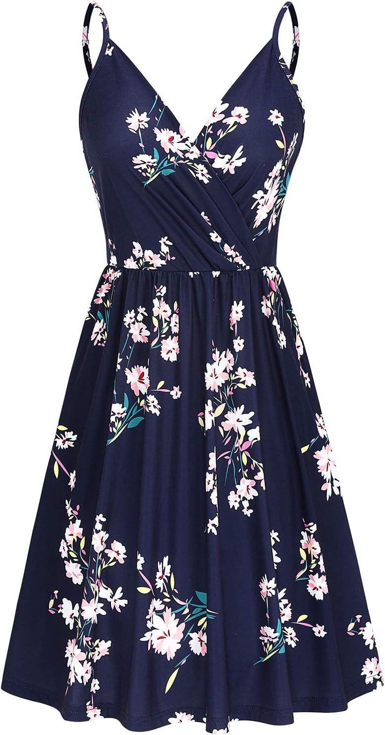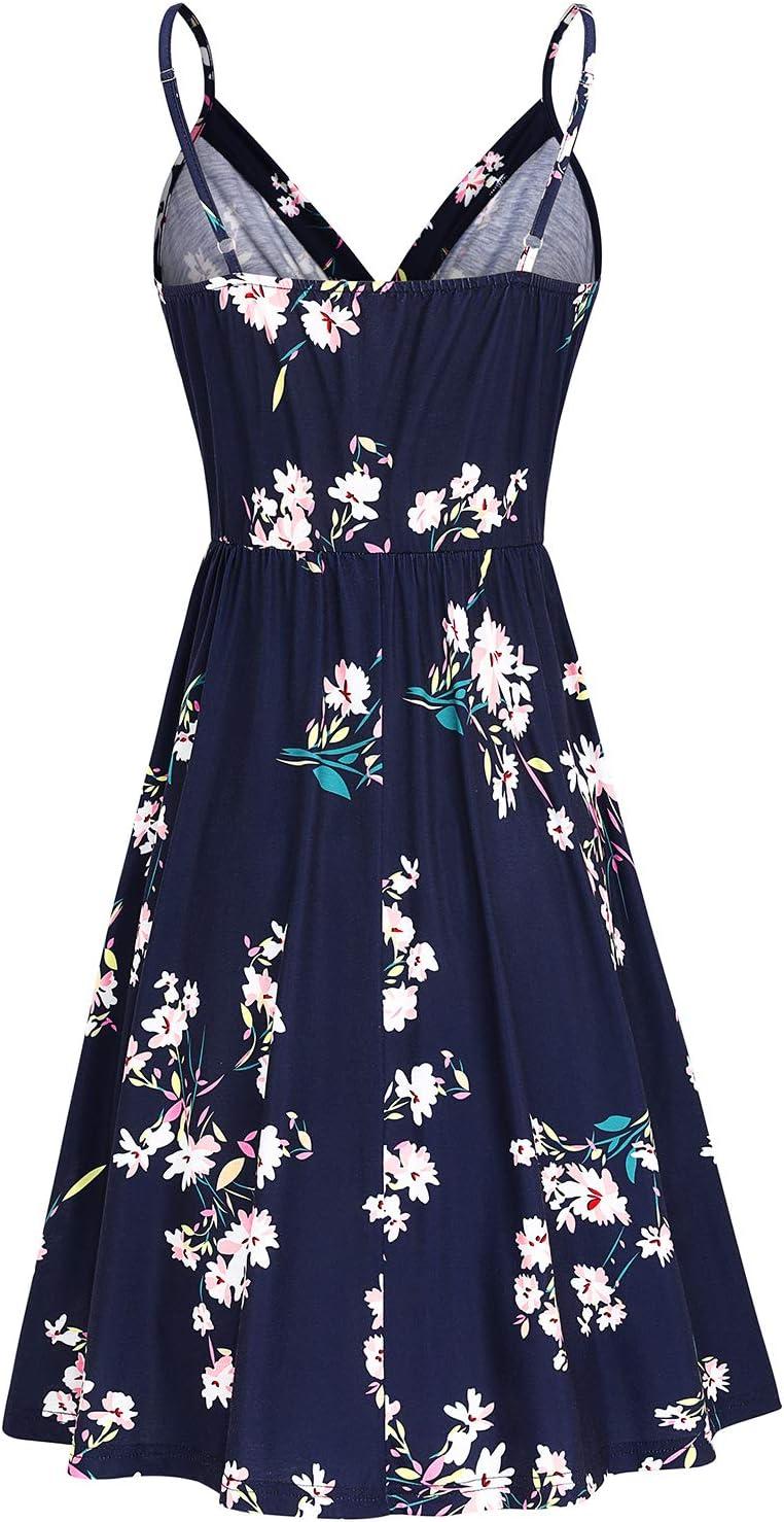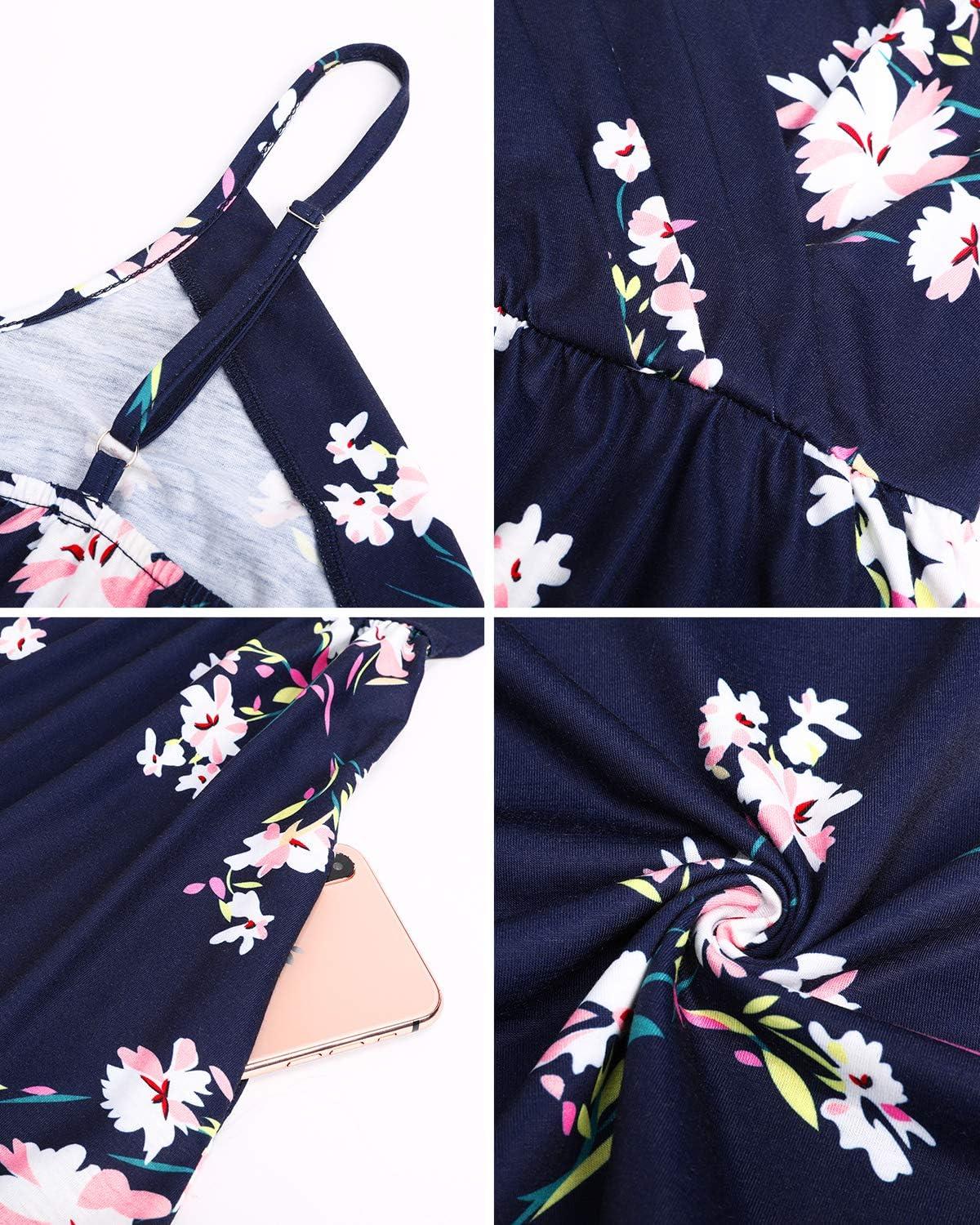 Newshows Women’s Summer Dress 2025 Spaghetti Strap Sleeveless V Neck Casual Swing Sundress with Pockets(Blue Floral White)