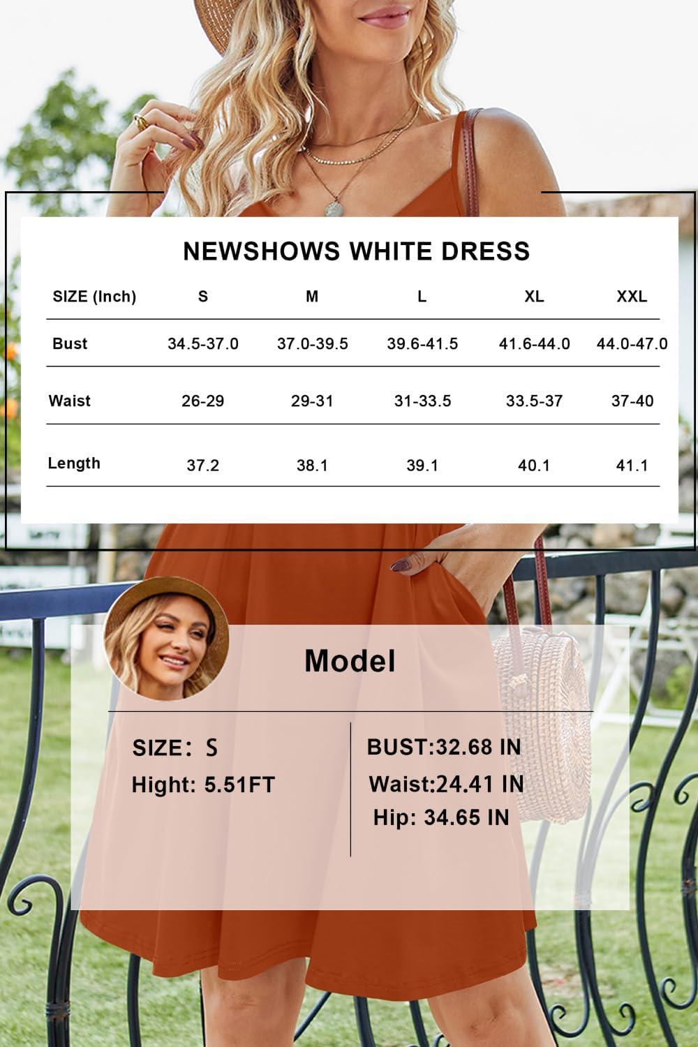 Newshows Women’s Summer Dress 2025 Spaghetti Strap Sleeveless V Neck Casual Swing Sundress with Pockets(Orange)