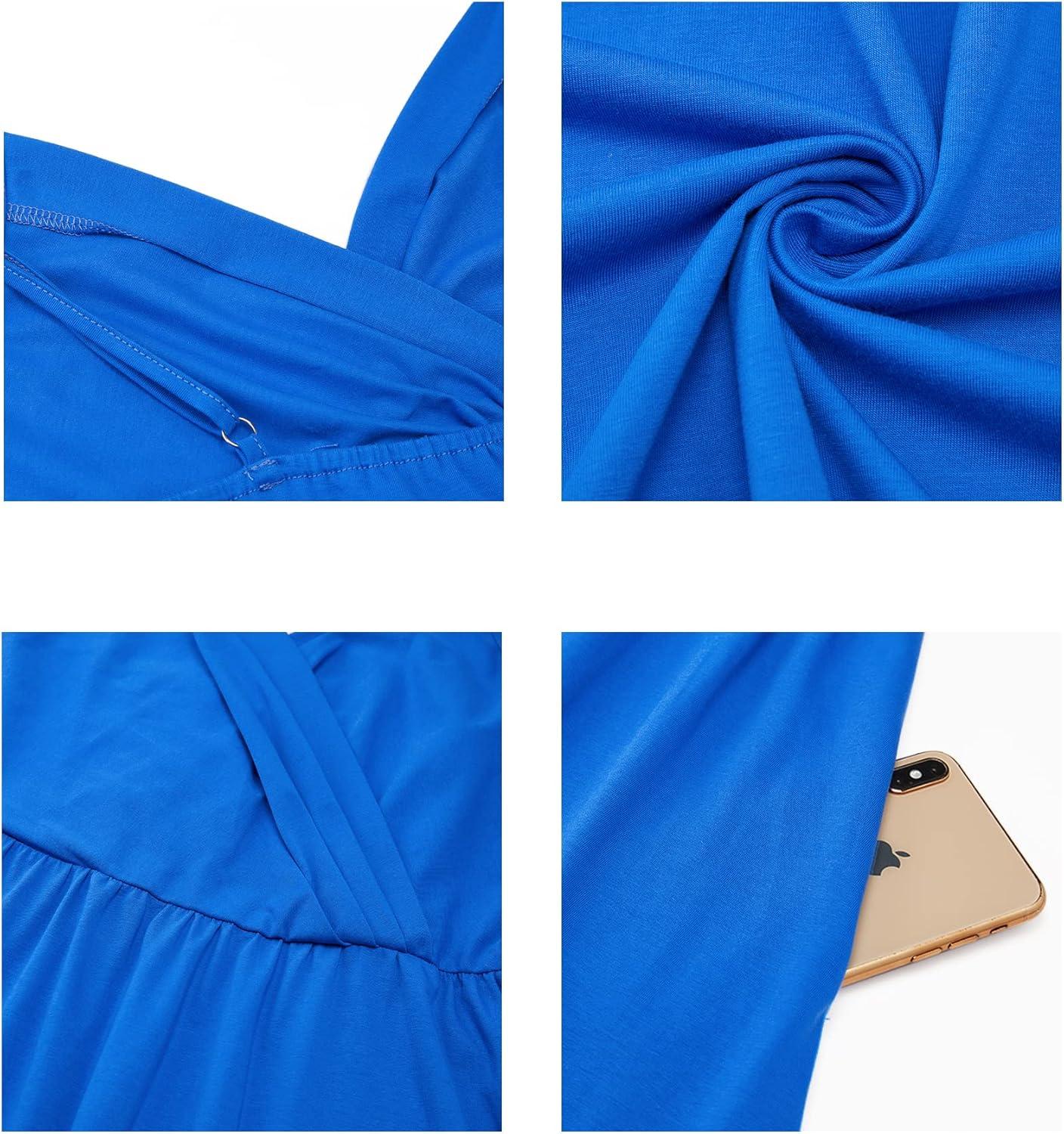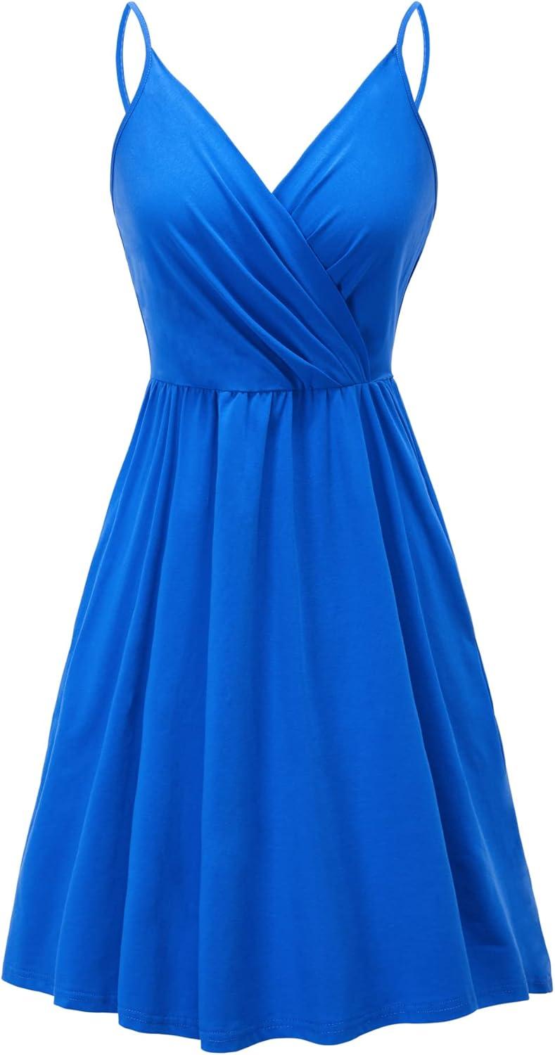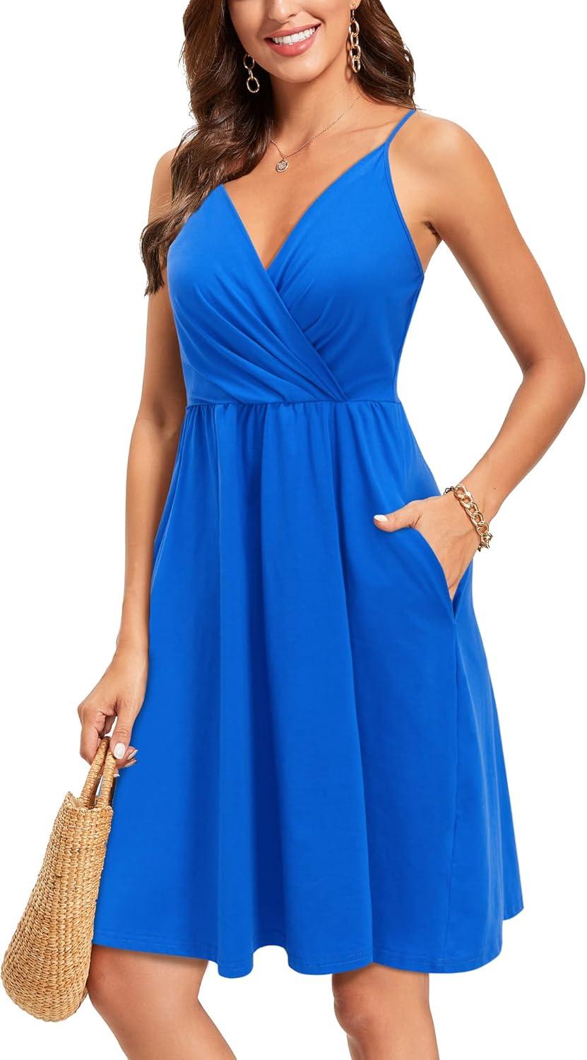 Newshows Women’s Summer Dress 2025 Spaghetti Strap Sleeveless V Neck Casual Swing Sundress with Pockets(Royal Blue)