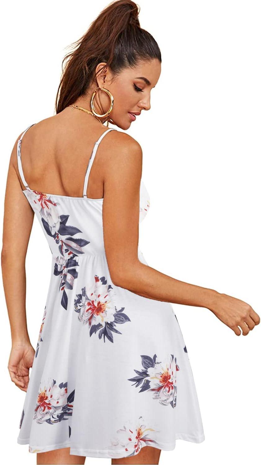 Newshows Women’s Summer Dress 2025 Spaghetti Strap Sleeveless V Neck Casual Swing Sundress with Pockets(White Floral Gray)
