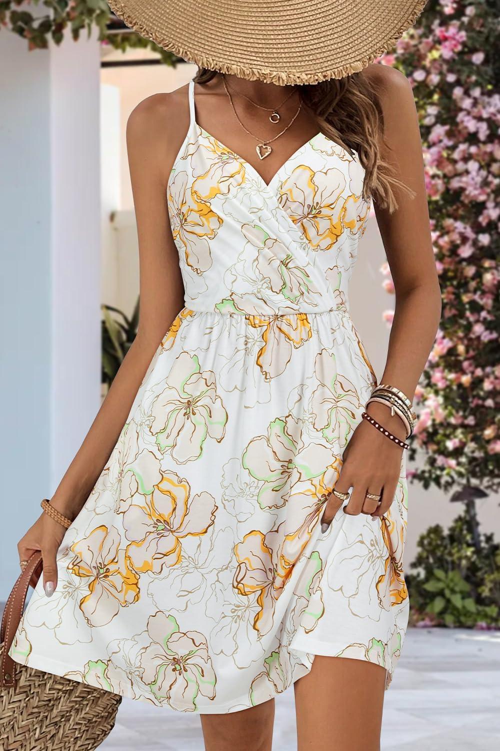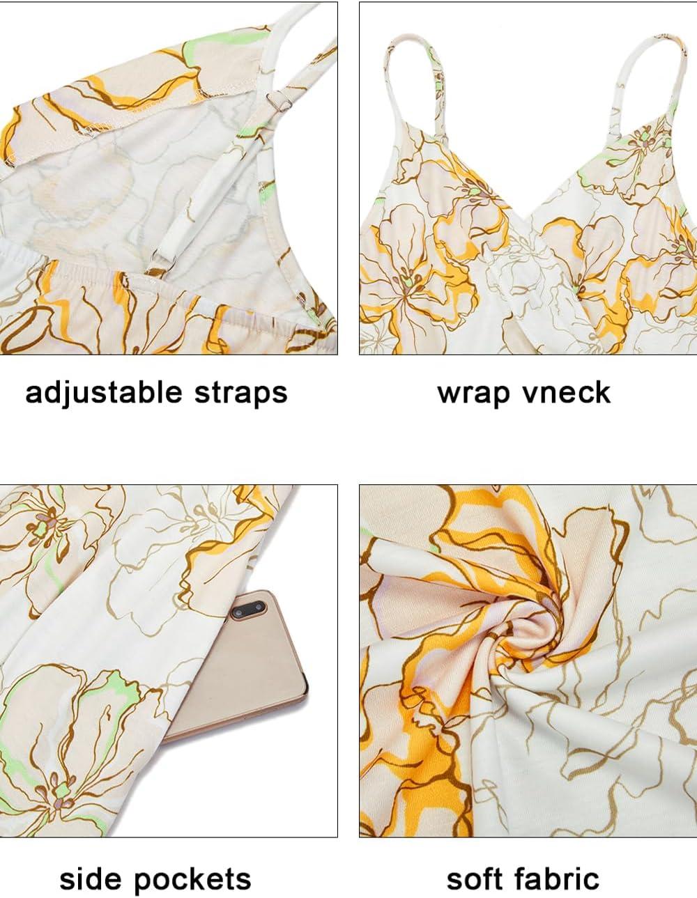 Newshows Women’s Summer Dress 2025 Spaghetti Strap Sleeveless V Neck Casual Swing Sundress with Pockets(White Floral Yellow)