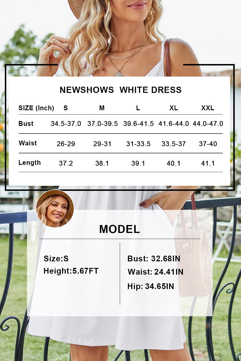 Newshows Women’s Summer Dress 2025 Spaghetti Strap Sleeveless V Neck Casual Swing Sundress with Pockets(White)